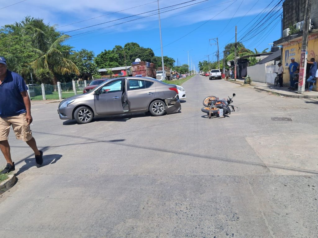 En la tarde de hoy alrededor de las 14:25 hrs se suscitó un accidente vehicular sobre la avenida Adolfo López Mateos a la altura de la calle Adolfo Ruiz Cortines en la Colonia 17 de Octubre de esta ciudad y puerto, en dicho lugar se vio involucrado el ciudadano Rogelio «N» de 63 años de edad con domicilio en la Infonavit croc, el cual iba conduciendo un vehículo de la marca Nissan tipo Versa color gris modelo 2019 placas del estado de Veracruz número YVC228B, mismo que al invadir carril de circulación preferente colisiona de un momento a otro un vehículo Vento tipo 210 color gris con naranja modelo 2025 placas del estado de Veracruz número 15YNJ9, conducida por la ciudadana Martha Laura «N» de 25 años de edad con domicilio en la colonia 17 de octubre. En este incidente se reporta una mujer lesionada que era la conductora de la motocicleta.