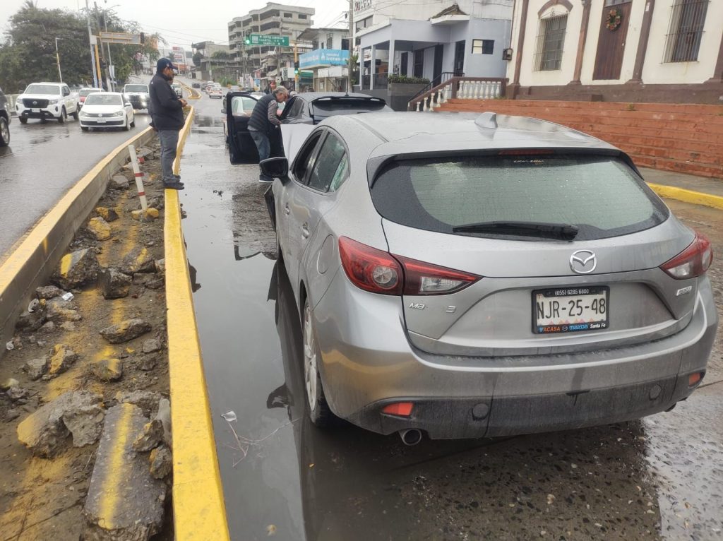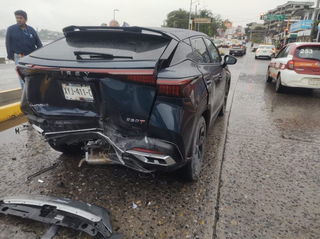 Un lesionado es el resultado de este accidente vial suscitado alrededor de las 11:30 HRS sobre la avenida Demetrio Ruiz Malerva precisamente frente al domicilio registrado con el número 31 en la Colonia Zapote gordo de esta ciudad y puerto donde el ciudadano Edgar «N» de 30 años de edad y con domicilio en calle San Marcos conducía un vehículo marca Mazda 3 de color gris modelo 2015 placas NJR2548 de México el cual al transitar por la avenida Demetrio Ruíz Malerva y al no conservar su debida distancia correspondiente impacta por alcance al vehículo marca chirey tipo OMDDA de color azul modelo 2023 placas XYJ411C del Estado siendo conducido por la ciudadana Laura Alicia «N» de 54 años de edad y con domicilio en la colonia Jardines de esta ciudad y puerto de Tuxpan Veracruz, después del fuerte impacto provoca que saliera hacia delante impactando a un vehículo de la marca Volkswagen tipo golf de color blanco con rojo modelo 2016 placas A347XEK del Estado de servicio público modalidad taxi # 968 era conducido por el ciudadano Oscar «N» de 67 años de edad y con domicilio en calle 5 de diciembre de la colonia burocrática en Tuxpan.