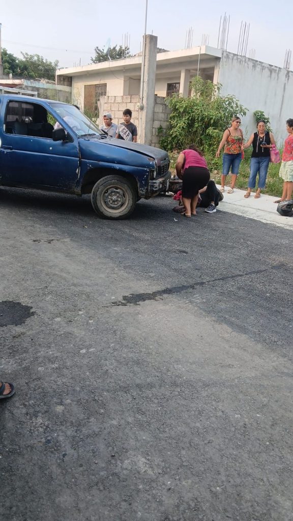 Eran alrededor de las 9 am cuando un incidente vial deja como resultado una persona lesionada esto fue en la calle Demetrio Ruíz Malerva a la altura de la pollería «Rojas» en la colonia ampliación las granjas en dicho lugar se vió involucrado el ciudadano Fermín «N» de 57 años de edad y con domicilio en calle Montes de Oca en Tuxpan Veracruz el cual conducía un vehículo Nissan pick Up de color azul/blanco modelo 1987 placas XN83337B del Estado el cual al hacer su retorno colisiona con un vehículo Vento de color negro modelo 2021 placas 47YRB5 del Estado era conducido por el ciudadano José Ignacio «N» de tan solo 17 años de edad y con domicilio en la colonia villa Rosita , el joven lesionado fue inmediatamente trasladado al hospital civil para su debida valoración médica por la ambulancia de la cruz roja.