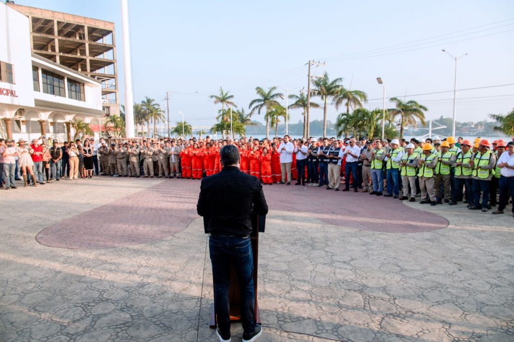Tuxpan, Veracruz; 20 de febrero de 2026.– Este viernes, el H. Ayuntamiento de Tuxpan realizó la entrega de 300 uniformes al personal operativo de las áreas de Obras Públicas y Servicios Públicos Municipales, en sus coordinaciones de limpia pública, parques y jardines, alumbrado, rastro y panteones.