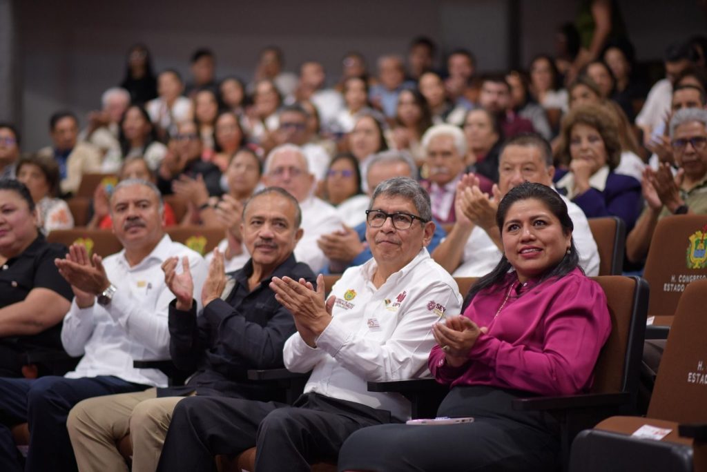 En el auditorio Sebastián Lerdo de Tejada del Palacio Legislativo se realizó este acto el cual registró la asistencia del rector y exrectores de esta casa de estudios y miembros del Sindicato Nacional de Trabajadores de la Educación (SNTE).