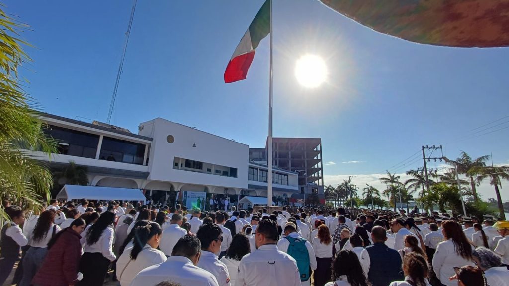 Bajo un cielo que enmarcó con solemnidad, elementos del Ejército Mexicano, autoridades municipales e integrantes del Ayuntamiento y ciudadanía en general, participaron en el acto protocolario que recordó el profundo significado de la Bandera Nacional como emblema de libertad, justicia y soberanía.
