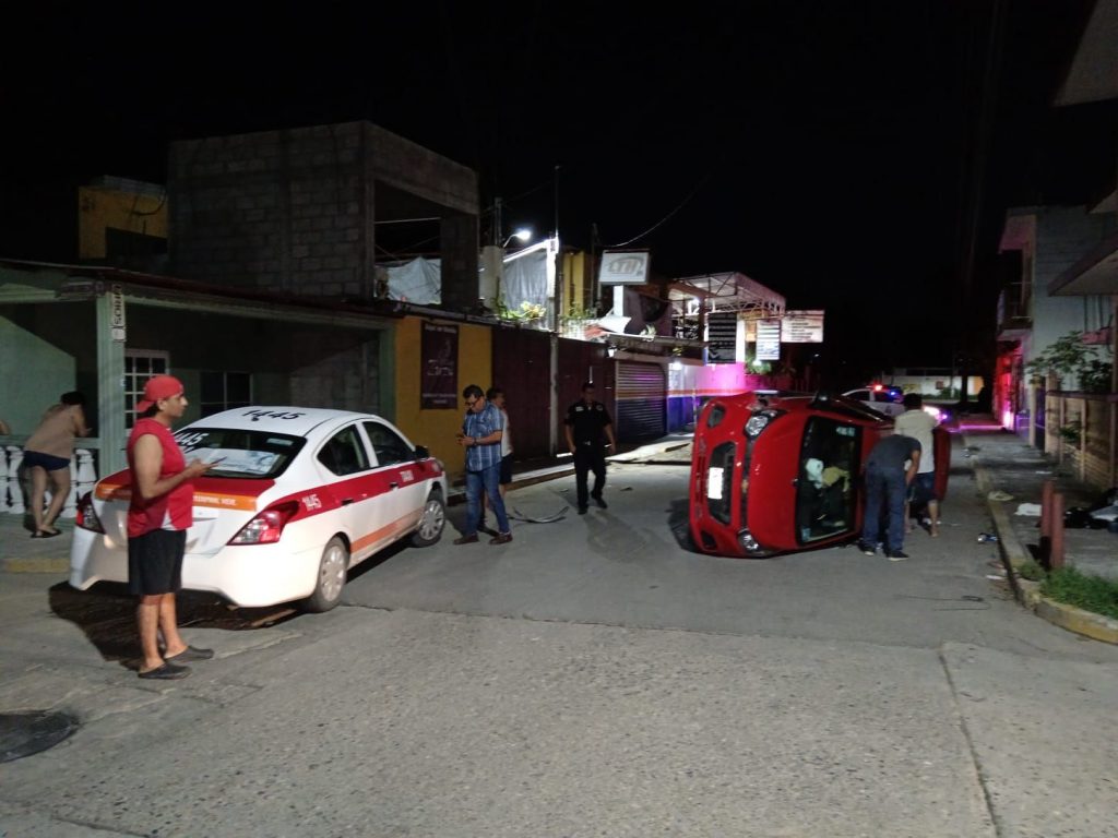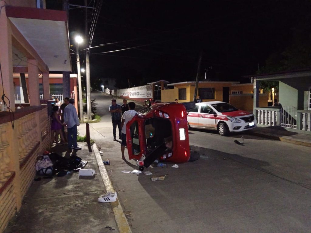 Se registró un accidente automovilístico alrededor de las 23:15 horas donde afortunadamente no hubo persona lesionada, solamente daños materiales esto fue sobre la calle lirio esquina con calle Álvaro Obregón de la colonia Rosa María de Tuxpan Veracruz en este lugar el ciudadano Julián «N» de 47 años de edad y con domicilio en calle Juan Segura de Infonavit Tulipanes el cual conducía una vehículo de la marca Chevrolet tipo beat color rojo modelo 2018 placas XZN438A del Estado de Veracruz mismo que al transitar por la calle lirio y al llegar a la esquina de la calle Álvaro Obregón pierde el control impactándose de su lado derecho con un vehículo que se encontraba estacionado de la marca versa de color blanco con rojo de servicio público «Taxi» con número económico 1445 placas A749XEY del Estado propiedad del ciudadano Alfonso «N» de 58 años de edad y con domicilio en calle lirio de la colonia Rosa María.