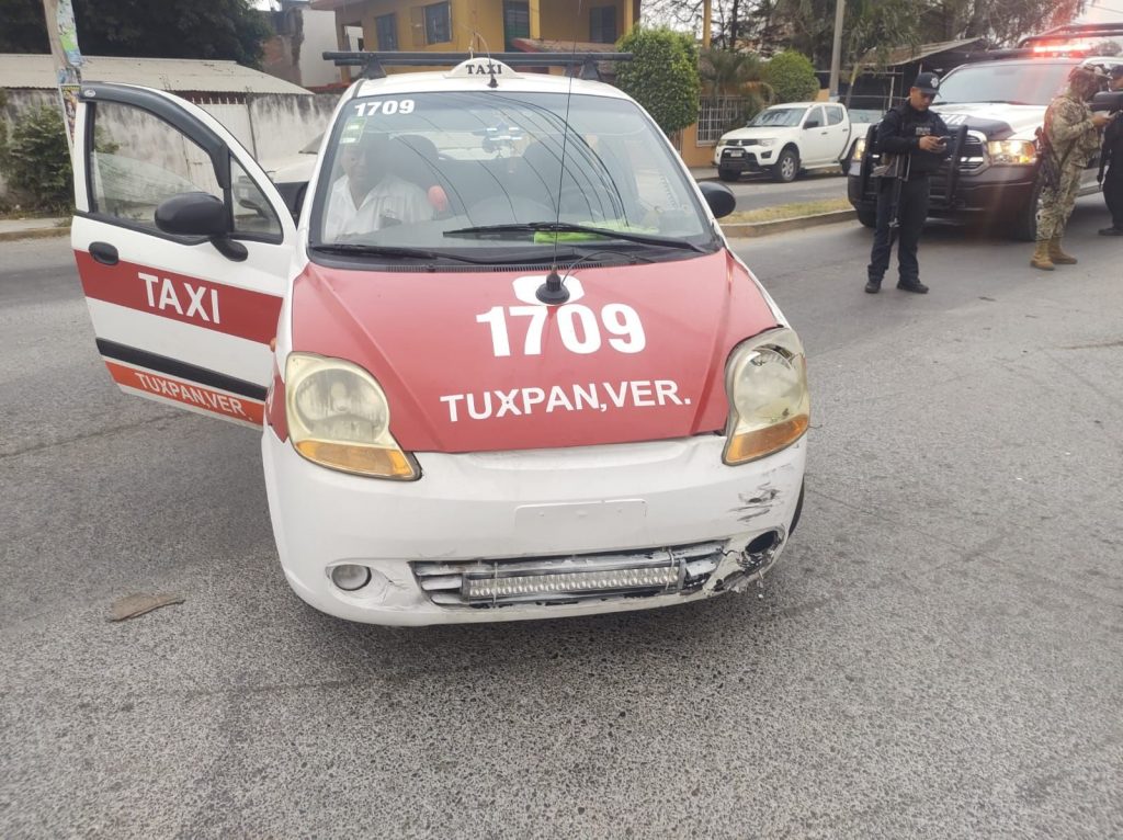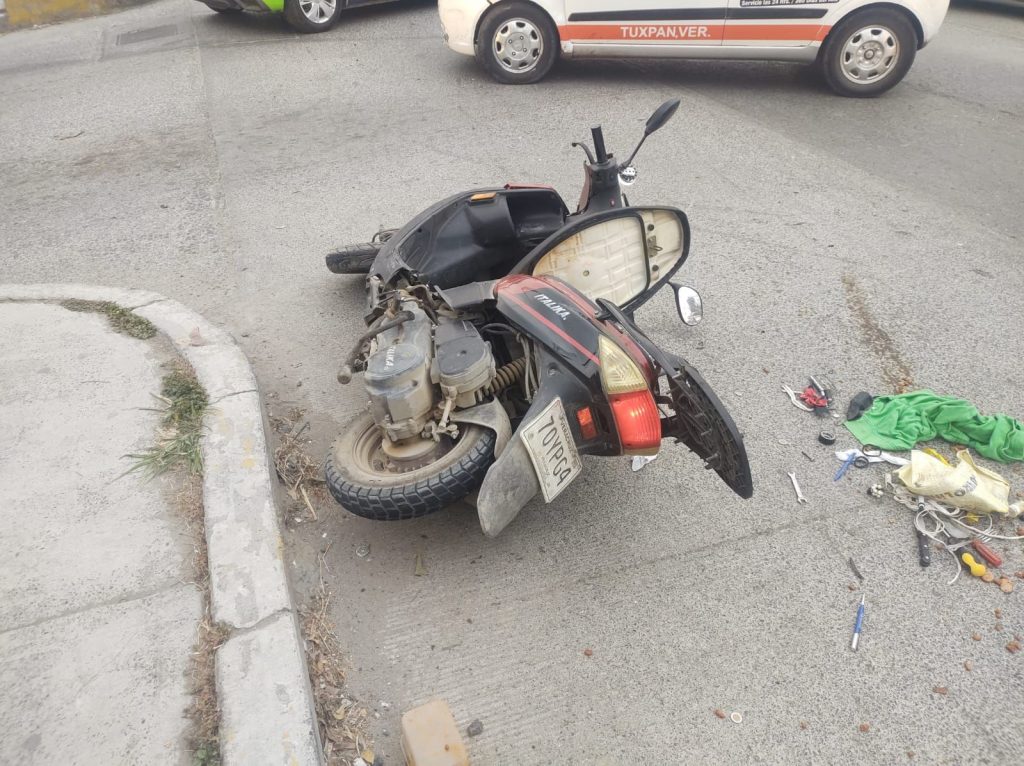 Transcurrían las 6:05 horas Sobre la avenida Adolfo López Mateos esquina Javier Solís en la Colonia Reyes heroles en Tuxpan el ciudadano Julio César»N» de 59 años de edad y con domicilio en la colonia Puerto Pesquero en Tuxpan Veracruz conducía un vehículo de la marca Pontiac tipo matiz color blanco con rojo sin placas de servicio taxi# 1709 el cual al transitar por la Avenida López Mateos y al girar hacia su izquierda no sede paso oportuno y colisiona de frente a una Italika de color negro con rojo modelo 2019 placas 70YPG4 del Estado la cual era conducida por la ciudadana Paola «N» de 55 años de edad y con domicilio en calle Álamo de la colonia Rodríguez Cano. En este accidente hubo una persona lesionada.