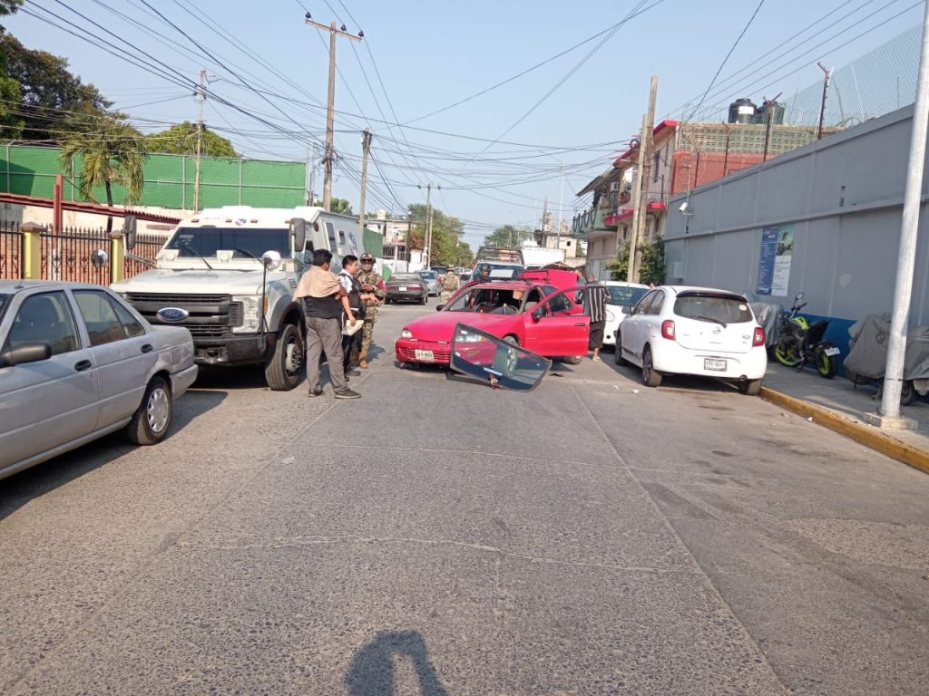 Eran las 11:22  de la mañana y a la altura del servicio panamericano de protección S. A. De C. V. Ubicado en la congregacion Santiago de la Peña en Tuxpan Veracruz se localizó un automóvil cavalier de color rojo modelo 1999 placas 389MRD del Distrito Federal el cual sufre un percance de tránsito tras este sucesos se desconocen los datos del conductor ya que se retiró del lugar de los hechos , donde el mismo impacta a un automóvil que se encontraba estacionado de la marca Ford de caja cerrada color gris placas perteneciente al servicio de transporte federal.