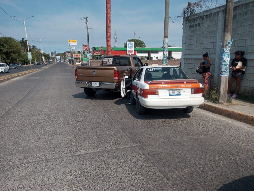 Alrededor de las 15:21 hrs sobre la carretera Tuxpan – Tampico a la altura de Office Depot en la Colonia Jardines de Tuxpan, hubo un percance automovilístico donde el ciudadano Franco «N» de 37 años de edad con domicilio conocido en la comunidad de tamalín, indica según su versión de los hechos que iba conduciendo una Dodge tipo Ram 1500 color arena con placas del estado de Nuevo León # PU6960 mismo que al pretender dar vuelta a su derecha no toma su carril correspondiente provocando así colisionar un vehículo Nissan tipo Sur colores oficiales blanco con rojo modelo 2015 taxi económico # 1487 placas del estado # A475XEK conducido por el ciudadano Gerardo «N» de 59 años de edad con domicilio conocido en la comunidad de Juana Moza. Cómo resultado de este accidente solo resultaron lesionados los que iban a bordo del taxi.