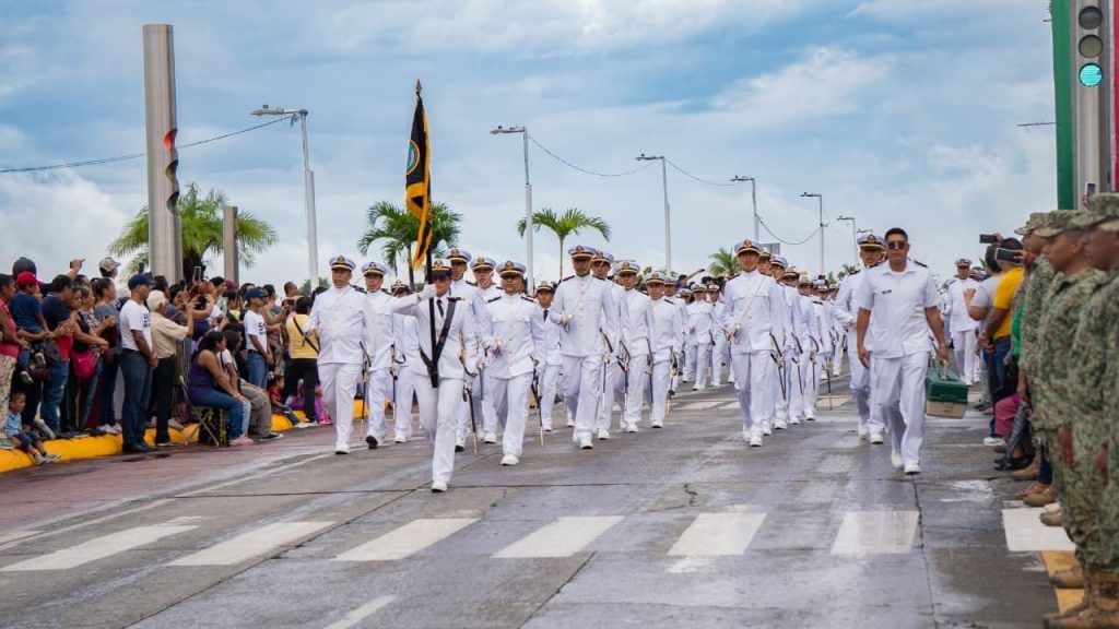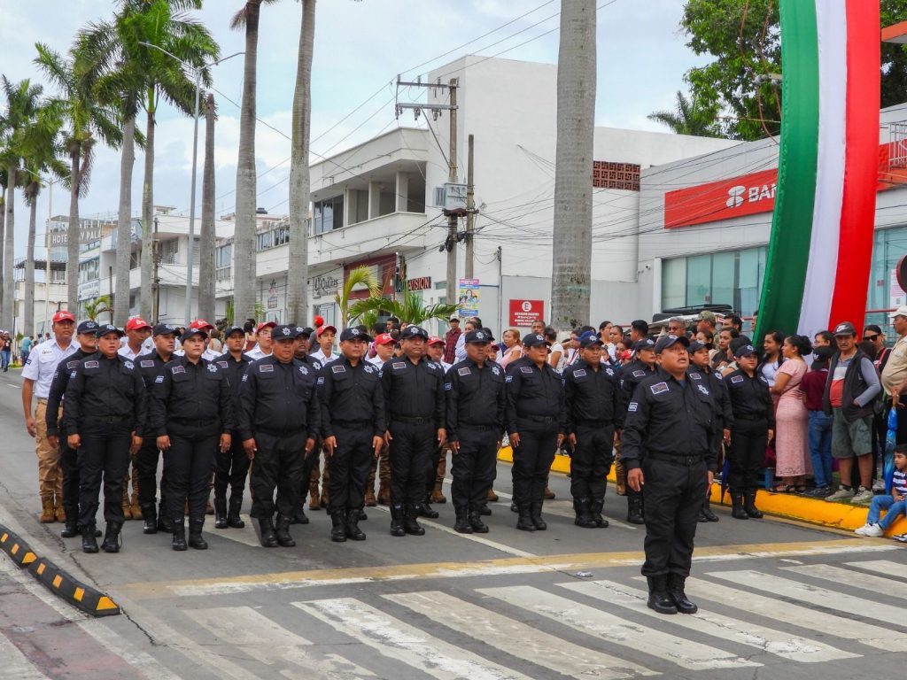 Los contingentes, vehículos, equinos, y embarcaciones recorrieron el bulevar Jesús Reyes Heroles, desde la calle Zózimo Pérez hasta la calle Vicente Guerrero, pasando frente al Palacio Municipal donde fueron saludados por el presidente municipal Dr. Jesús Fomperoza Torres, autoridades militares, navales, municipales y civiles.