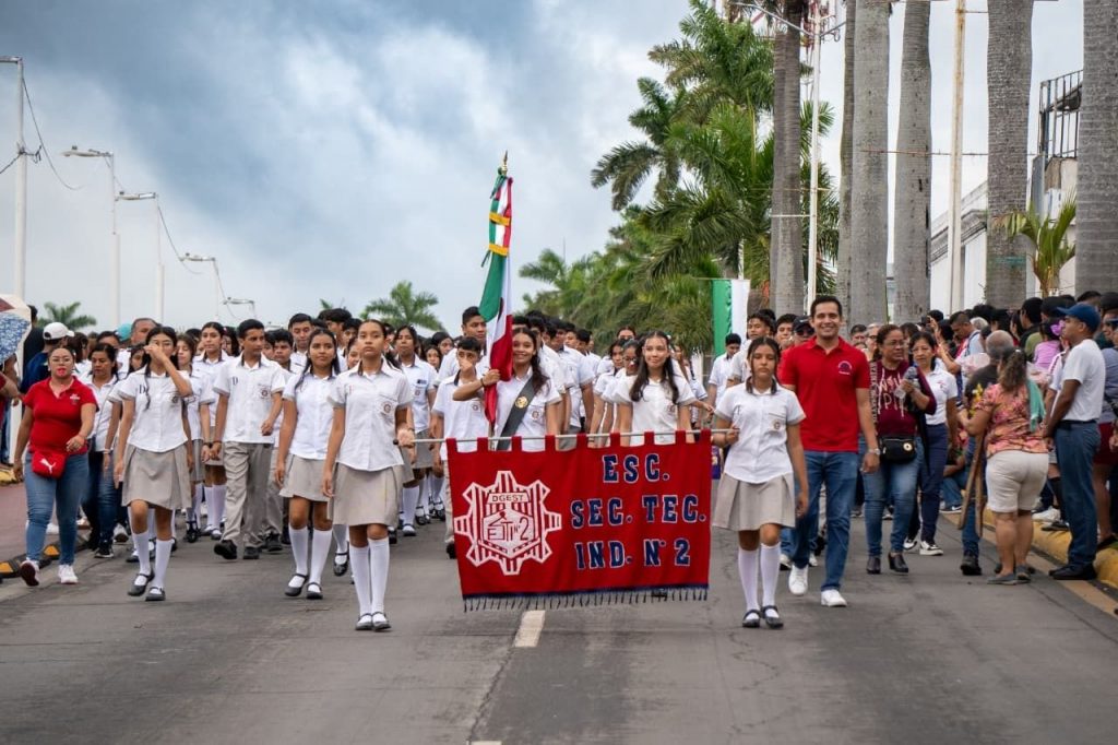 Al término, el primer edil del municipio recibió el reporte de novedades del desfile, mismo que se desarrolló con respeto y armonía.