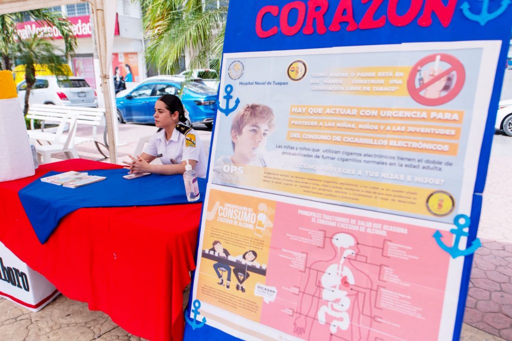 En la explanada municipal, la Jurisdicción Sanitaria II llevó a cabo la Feria de la Salud con la colaboración del DIF Tuxpan, IMSS, Pemex y Hospital Naval de Tuxpan.