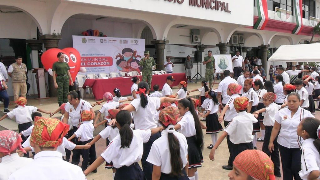 Para conmemorar el Día Mundial del Corazón, el gobierno de Tuxpan realizó el Lunes Cívico en el que participaron alumnas, alumnos y personal docente de la escuela primaria “José María Morelos y Pavón”.