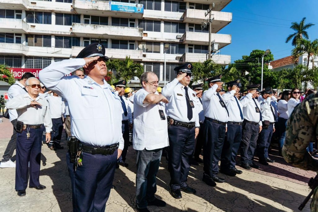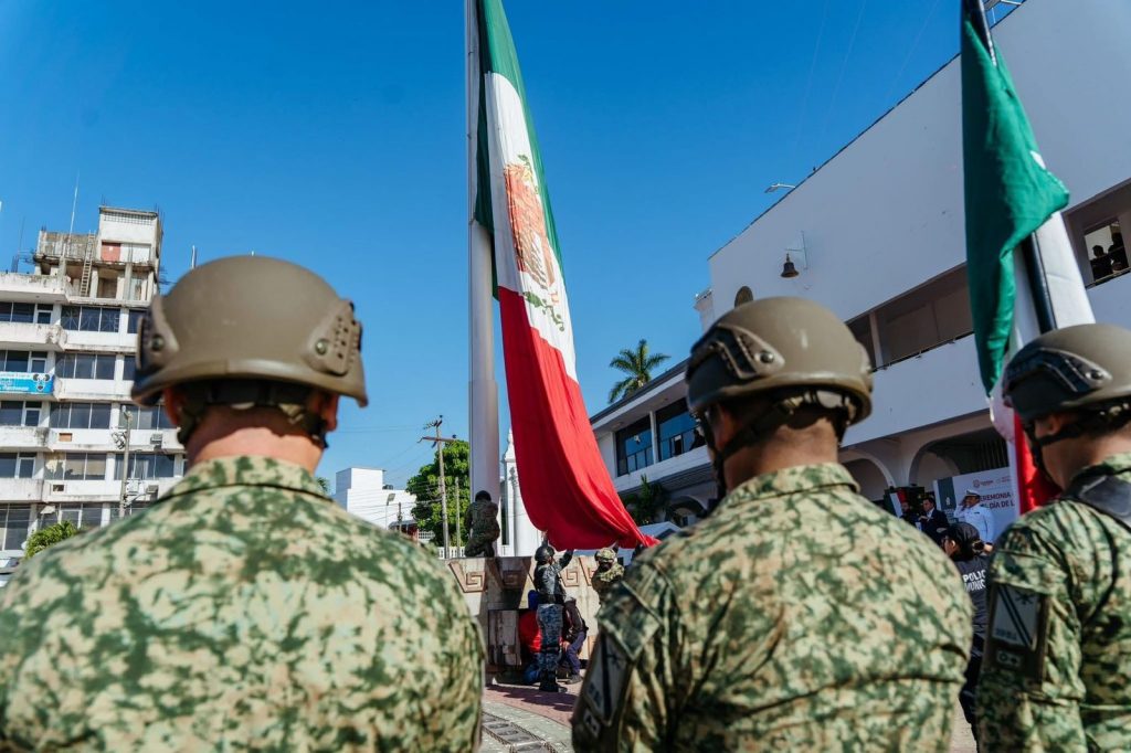 Durante la ceremonia se realizó el izamiento de la Bandera Nacional y la entonación del Himno Nacional Mexicano, además de una remembranza histórica que recordó el significado y la evolución de nuestro lábaro patrio como emblema de identidad, lucha y unidad nacional, a cargo de la Soldado Policía Militar, Alma Tatnay Ledezma Villasana.