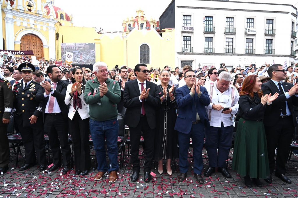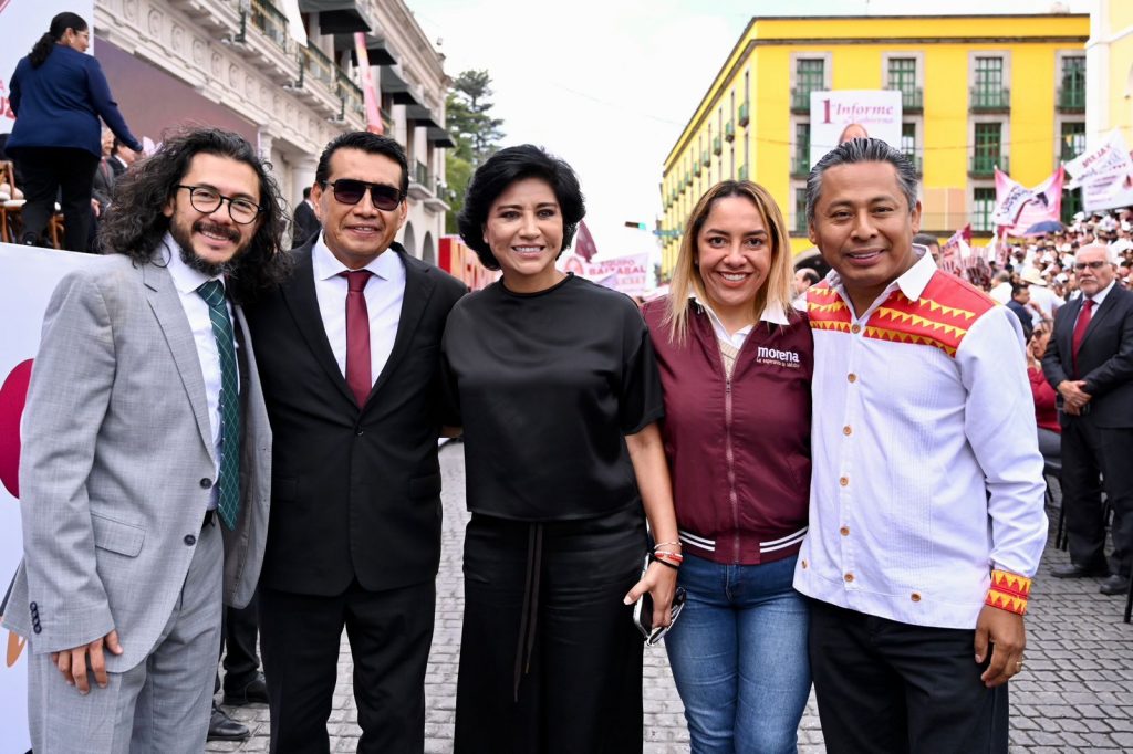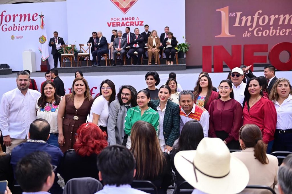 Diputadas y diputados de la LXVII Legislatura del estado, encabezados por la presidenta de la Mesa Directiva, Naomi Edith Gómez Santos, y por el presidente de la Junta de Coordinación Política (Jucopo), Esteban Bautista Hernández, acudieron a la ceremonia del Primer Informe de Gobierno de la gobernadora de Veracruz, Rocío Nahle García, realizado en la plaza Lerdo de la ciudad capital.