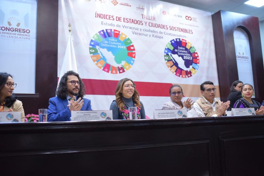 El Congreso de Veracruz contribuye al fortalecimiento del cuidado del medio ambiente, a la reducción de la desigualdad y al mejoramiento del desarrollo urbano y de las condiciones de vida de los más de ocho millones de habitantes del estado, afirmó la presidenta de la Mesa Directiva de la LXVII Legislatura, Naomi Edith Gómez Santos, al inaugurar el taller Índices de Estados y Ciudades Sostenibles, organizado por el Grupo Legislativo del Partido Verde Ecologista de México (PVEM), en colaboración con el Instituto Mexicano para la Competitividad, A. C. (IMCO), la Fundación NovaGob y el Centro Mario Molina.