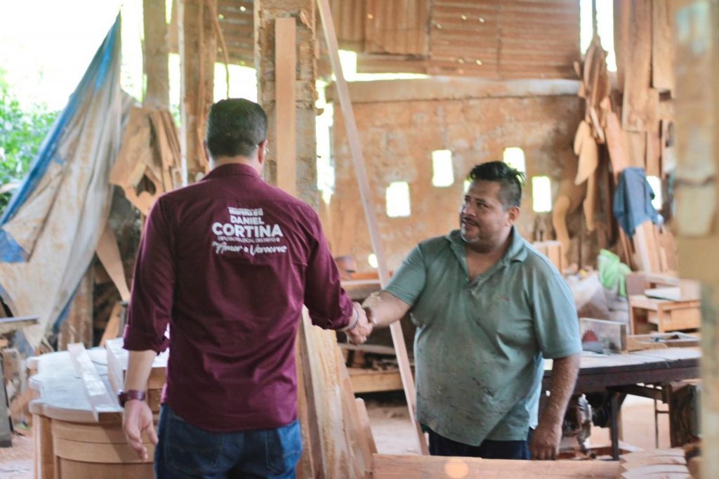 Tihuatlán, Ver., a 21 de mayo de 2024.- “Llegó el tiempo de aprovechar las oportunidades y riquezas naturales de sus lugares de origen, desde el Congreso Local promoveremos el desarrollo económico y el empleo en los cuatro municipios del distrito III”, destacó Daniel Cortina, candidato a la diputación local por la coalición “Sigamos Haciendo Historia en Veracruz”, al reunirse con carpinteros de la capital del mueble en el estado.
