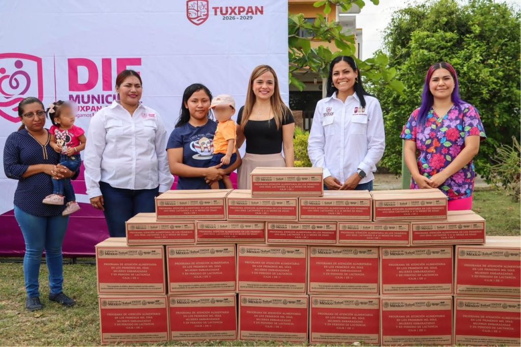 Con el firme compromiso de impulsar el desarrollo integral de las familias tuxpeñas, el Sistema DIF Tuxpan realizó la entrega de apoyos alimentarios como parte del programa “Mil Días”, una estrategia nacional y estatal orientada a garantizar el bienestar de niñas y niños desde la gestación hasta los primeros dos años de vida.