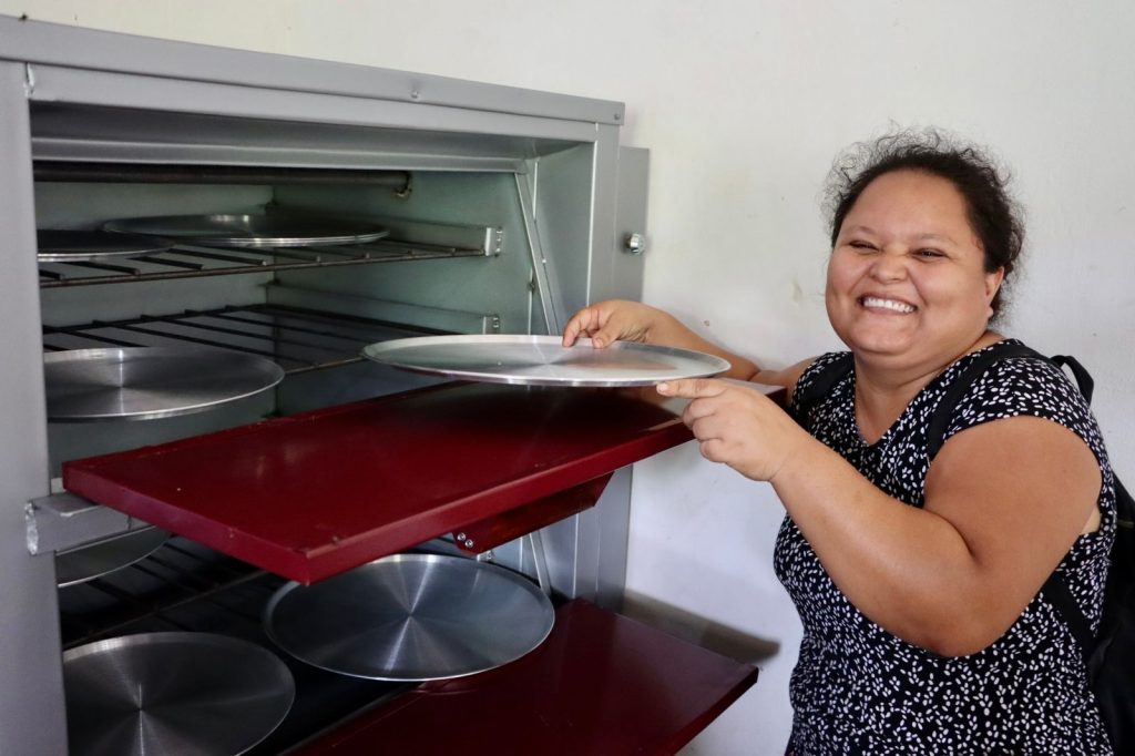 Acompañada de las beneficiadas, la titular del DIF local las convocó a mantenerse unidas y trabajar por el bien común del grupo, a aprender o mejorar técnicas de repostería, panadería y elaboración de pizza para ponerlos a la venta y lo recaudado se destine al desarrollo de más producto y a la economía de sus familias.