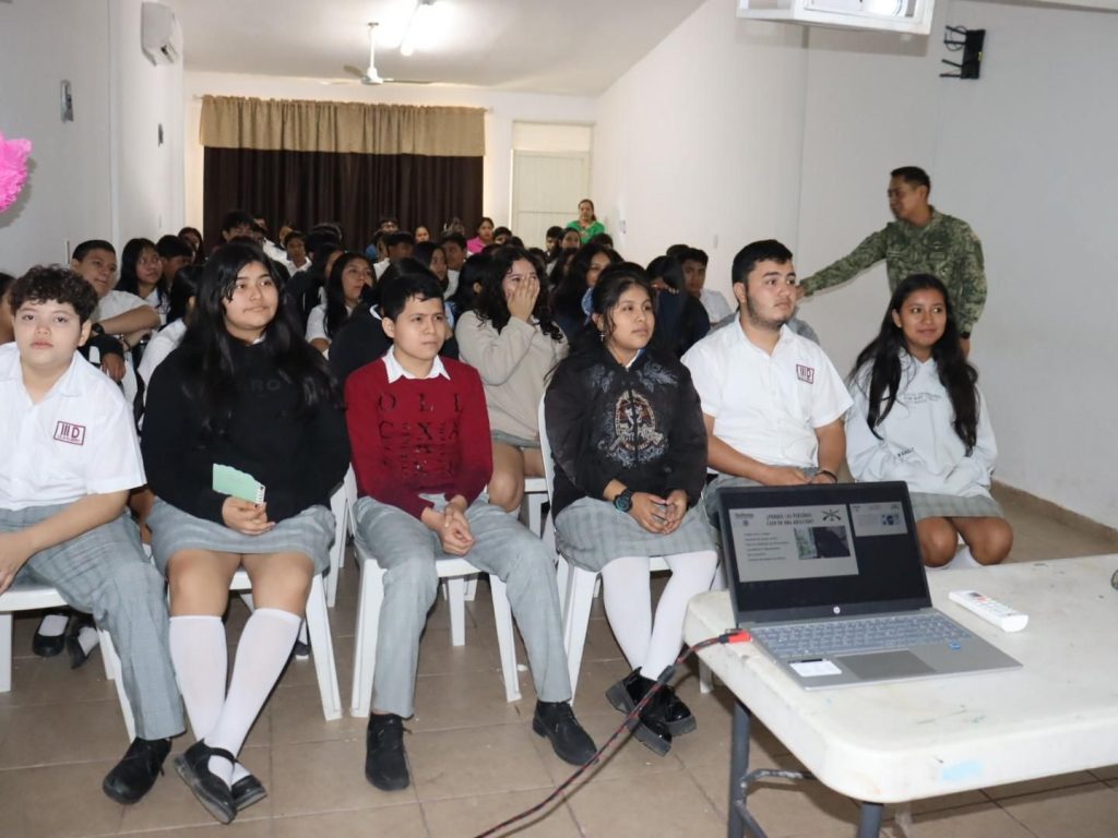 Conscientes de la creciente problemática de las adicciones entre los jóvenes, elementos especializados de nuestro batallón impartieron una significativa Conferencia de Prevención de Adicciones en la Escuela Telesecundaria «Francisco Clavijero». Esta iniciativa forma parte de un programa semanal que busca educar y sensibilizar a los estudiantes sobre los riesgos y consecuencias del consumo de sustancias nocivas.