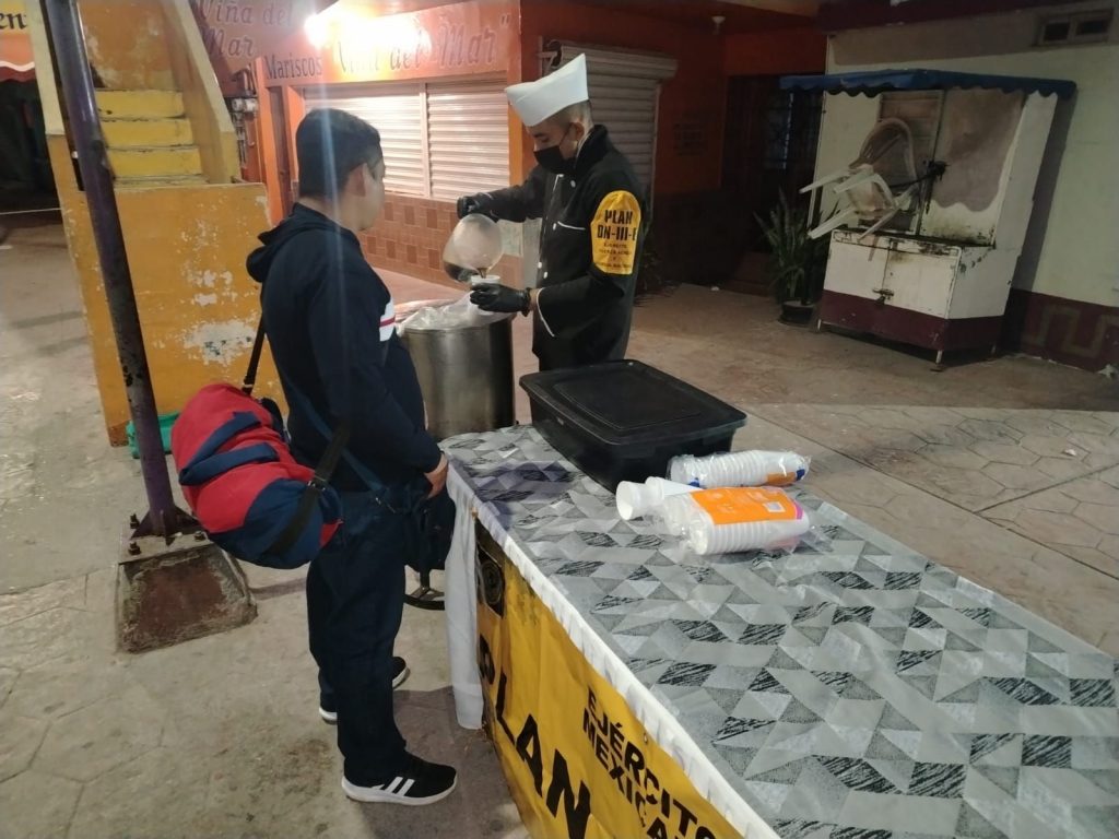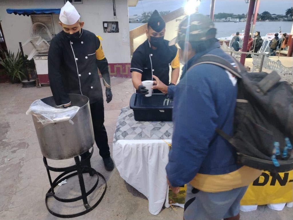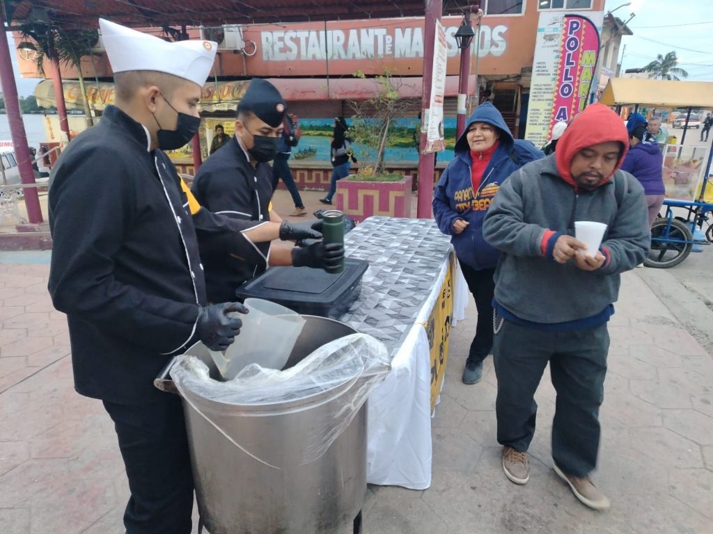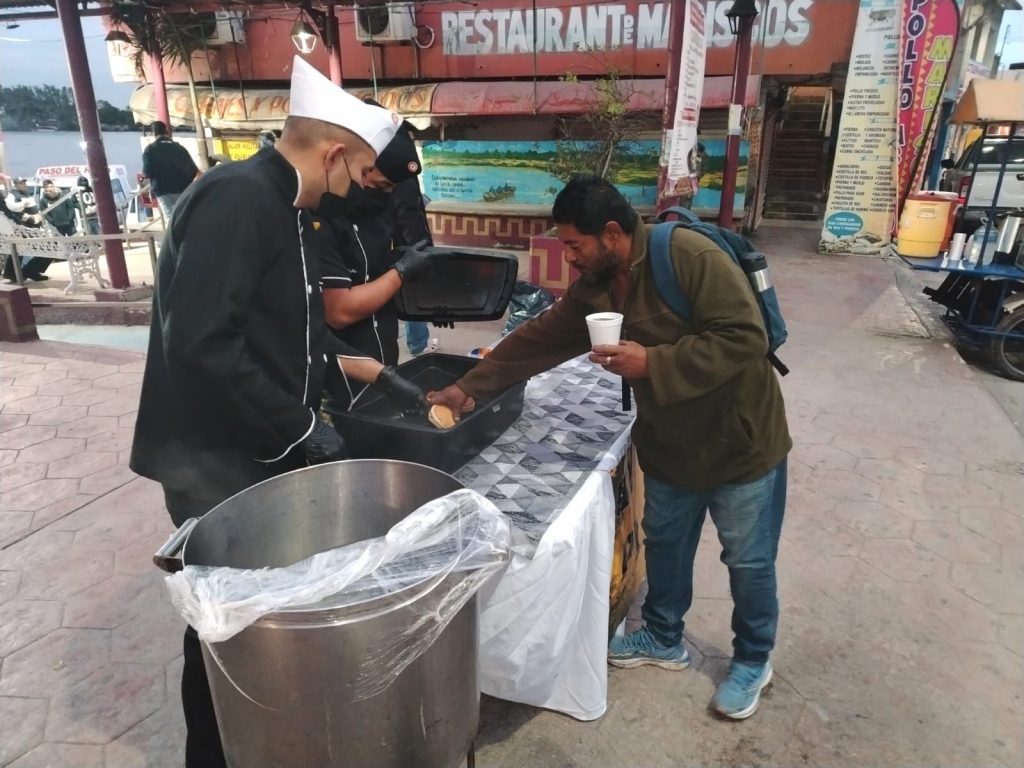 Como parte de estas acciones, se llevó a cabo la repartición de pan y bebidas calientes en las localidades del Paso 106