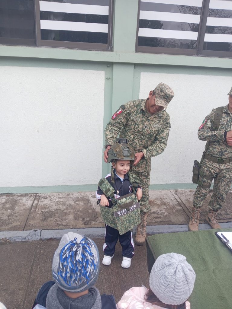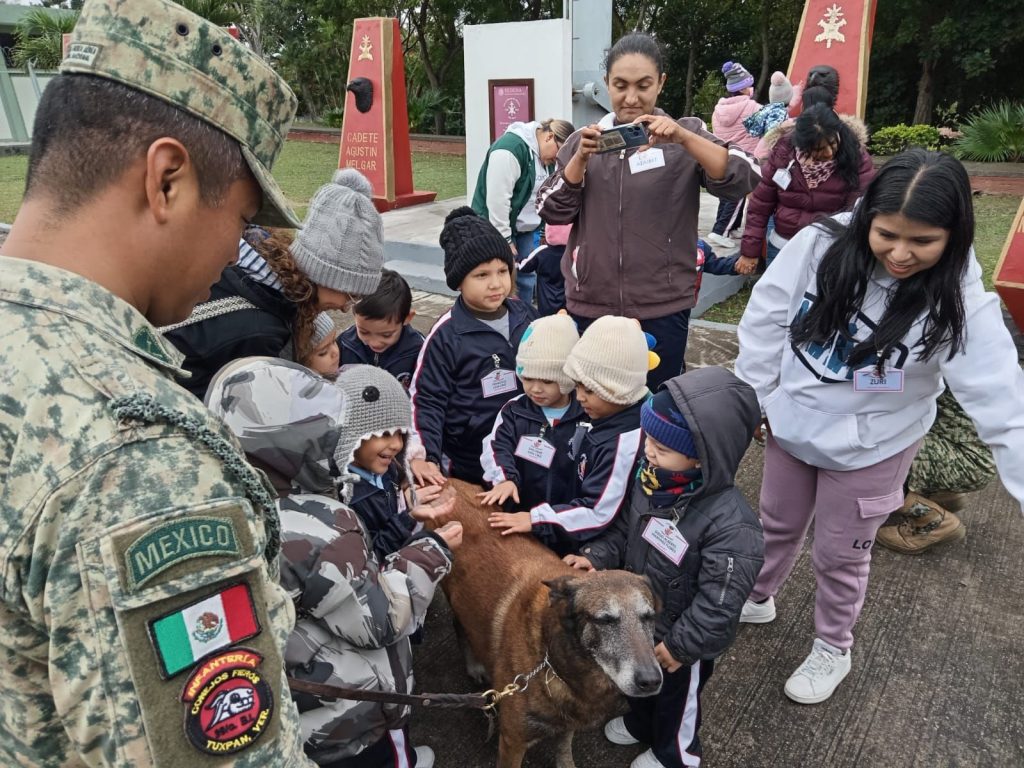 Está mañana, alumnos del jardín de niños «Reino Aventura» recorrieron las instalaciones del 39/o. Batallón de Infantería, donde interactuaron con personal militar y conocieron las diversas actividades que realizan para garantizar su seguridad.