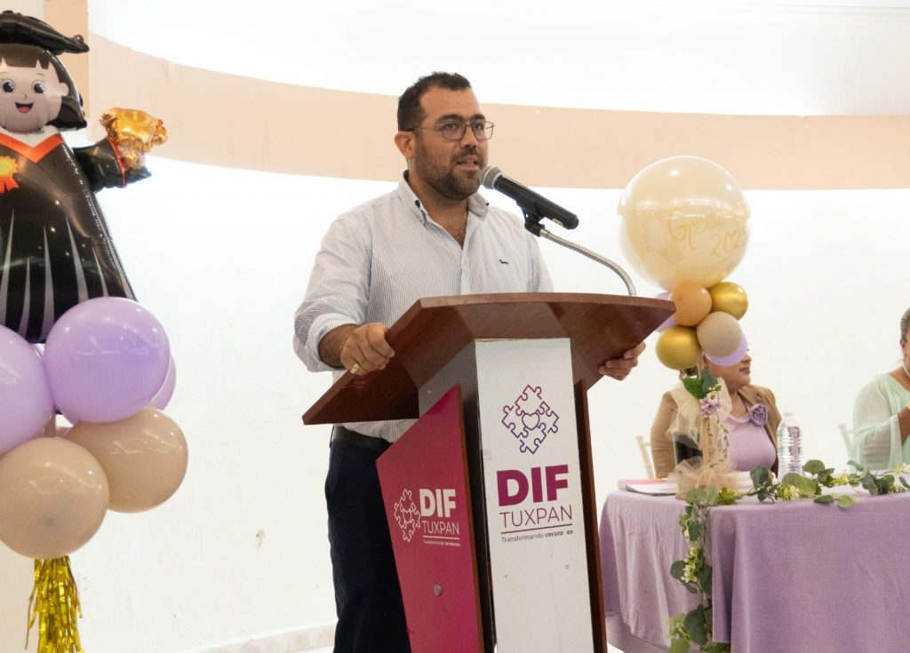 Fomperoza Torres reconoció la enorme labor realizada por equipo de trabajo del DIF Tuxpan, encabezado por su esposa la Q.I. Melba López Gutiérrez, al velar por los derechos de las niñas y los niños.