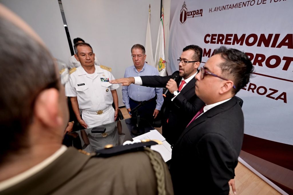 Las autoridades municipales estuvieron acompañadas por el Gral. de Brigada José Antonio Maldonado Guevara, comandante de la 19ª Zona Militar; el vicealmirante Miguel Ángel García Portillo, comandante de la 5ª Zona Naval; la presidenta del DIF Tuxpan, Lic. Pamela Morales Huesca; la directora de dicho organismo, Q.I. Melba López Gutiérrez; el diputado local por el 3er Distrito, Lic. Daniel Cortina Martínez; directores y coordinadores de las diversas áreas del Ayuntamiento.