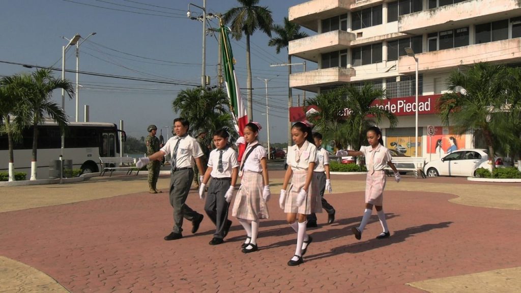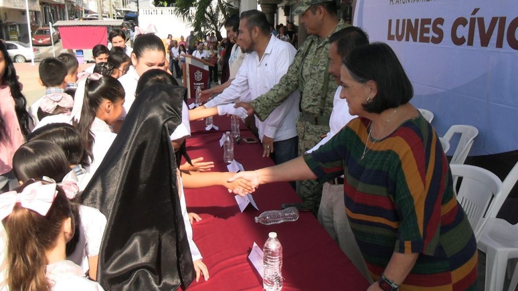Tuxpan, Ver 11 de noviembre 2024.- Alumnas y alumnos del colegio Gandhi participaron esta mañana en el Lunes Cívico que llevó a cabo el H. Ayuntamiento de Tuxpan, en el marco del aniversario del natalicio de la escritora Sor Juana Inés de la Cruz.