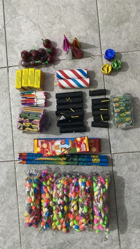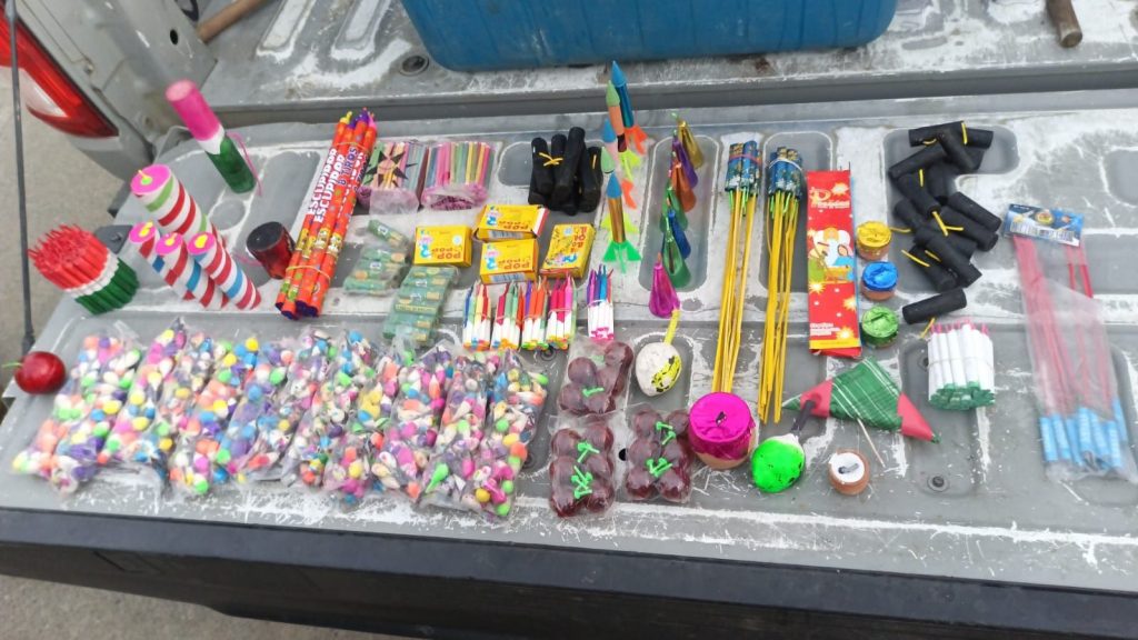 En esta temporada decembrina se han asegurado palomas, bolsas de chispitas, bengalas, chifladores, cañones, caras de diablo, bombas de humo, baloncitos, cazuelas, trabucos, piezas de conos, cajas de pop pop pop, cerillitos de luces, cohetes de varillas, cohetes misiles garra de tigre y otros.