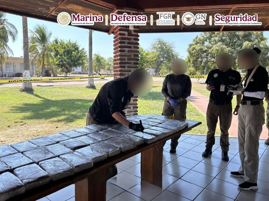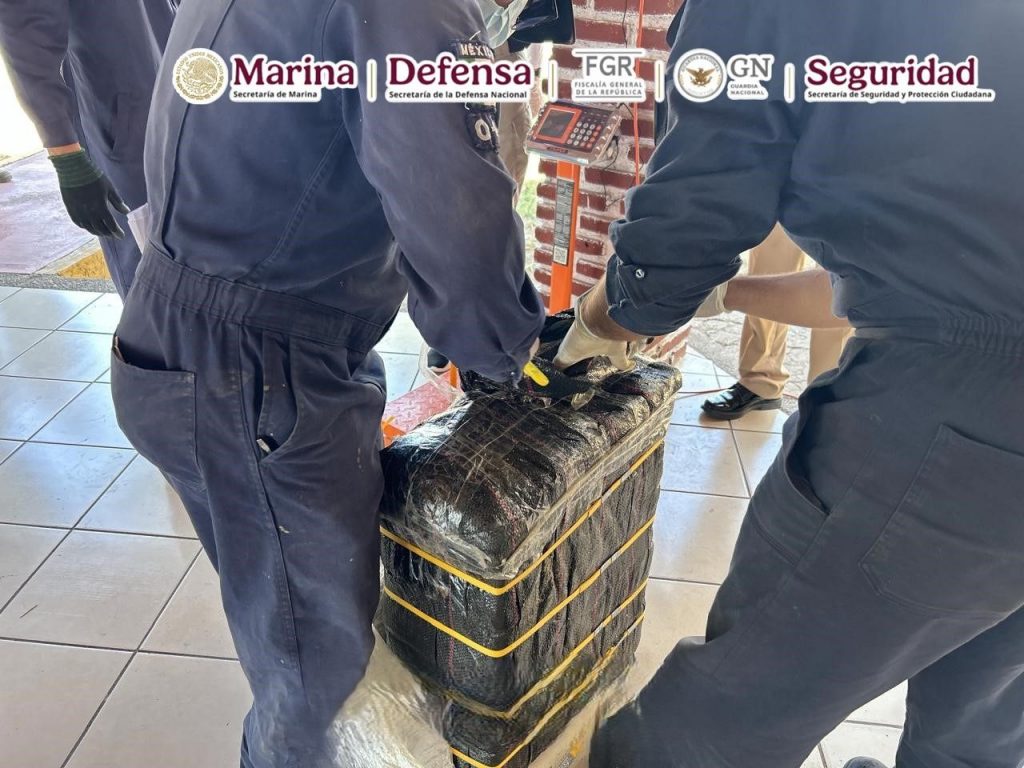 En una operación marítima encabezada por elementos de la Secretaría de Marina (Semar), a través de la Armada de México en funciones de Guardia Costera, en coordinación con la Fiscalía General de la República (FGR) y la Secretaría de Seguridad y Protección Ciudadana (SSPC), se aseguró una embarcación menor con un motor fuera de borda, cuatro bultos y tres bolsas con un peso aproximado de 265 kilogramos de presunta cocaína cuyo peso exacto será determinado por las autoridades ministeriales correspondientes, así como bidones de diversas capacidades que contenían presunto combustible para abastecer la misma embarcación.