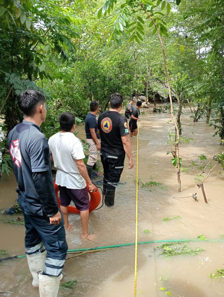 También rescataron sana y salva a una persona que había quedado atrapada por el desbordamiento de un arroyo, en la comunidad Las Pasas.