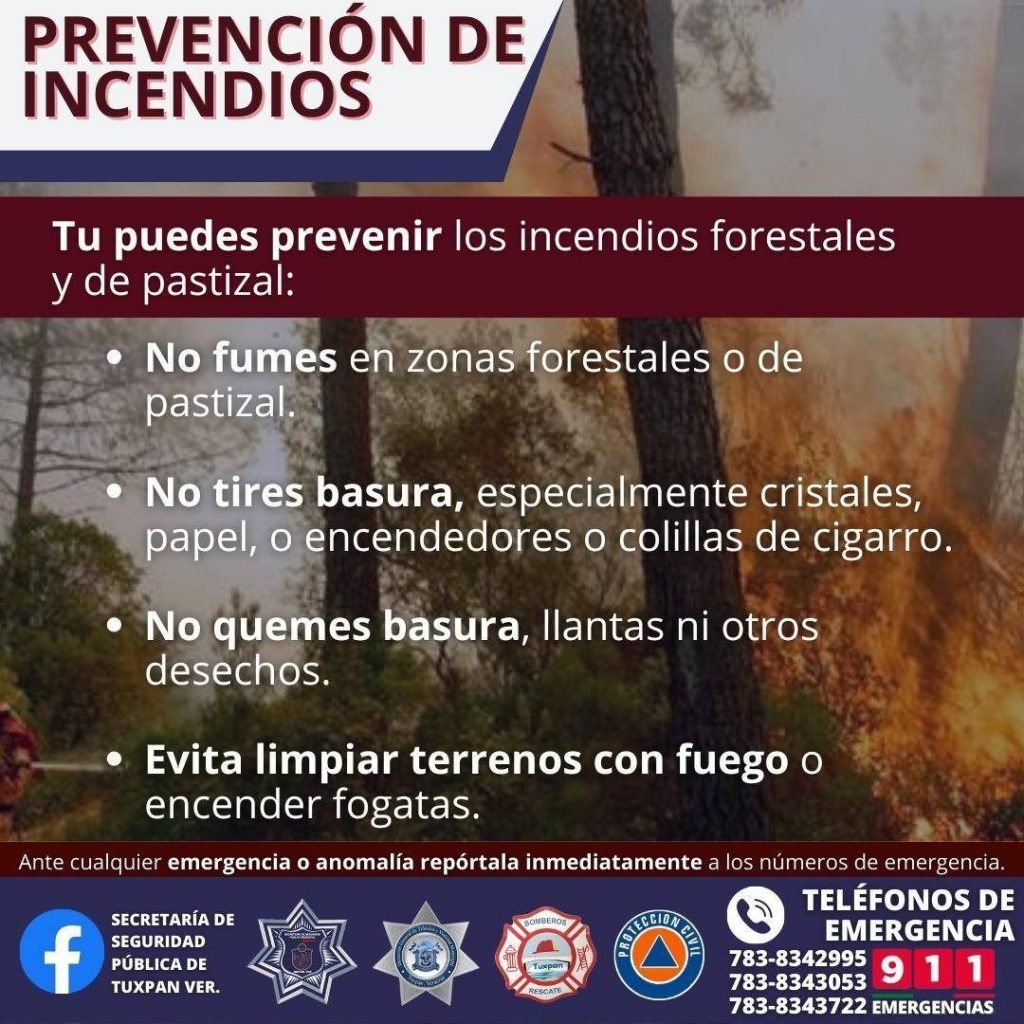 Protección Civil hace el exhorto a la población para que evite arrojar basura, materiales inflamables y objetos encendidos en zonas susceptibles a incendios.