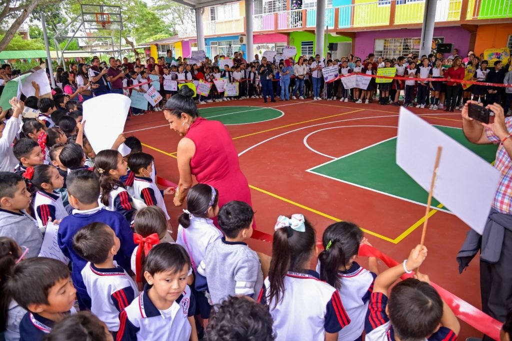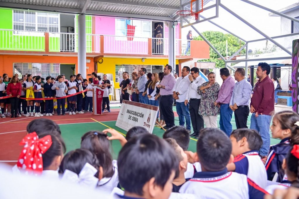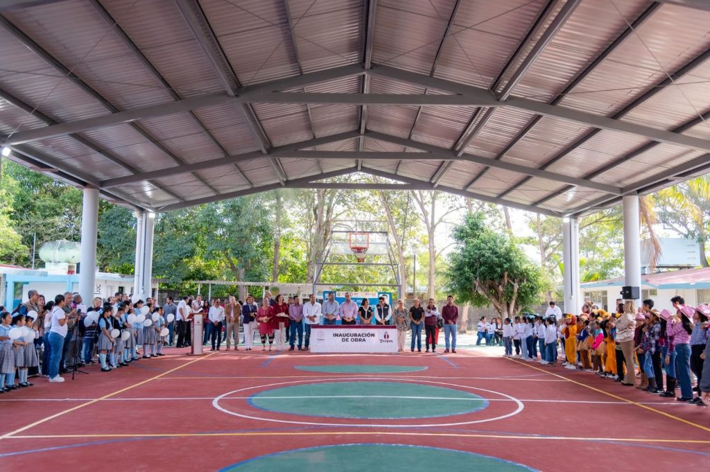 Personal docente y estudiantes agradecieron al gobierno de Tuxpan porque ya se podrán desarrollar diversas actividades físicas sin que alumnas y alumnos sean afectados por las inclemencias del tiempo.