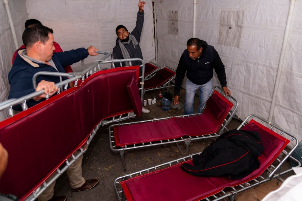 Como parte de estas acciones se instalaron más camastros en las carpas cerradas que el Ayuntamiento previamente colocó para que pudieran protegerse del frío y la lluvia. También se hizo entrega de más cobijas y se distribuyeron alimentos.