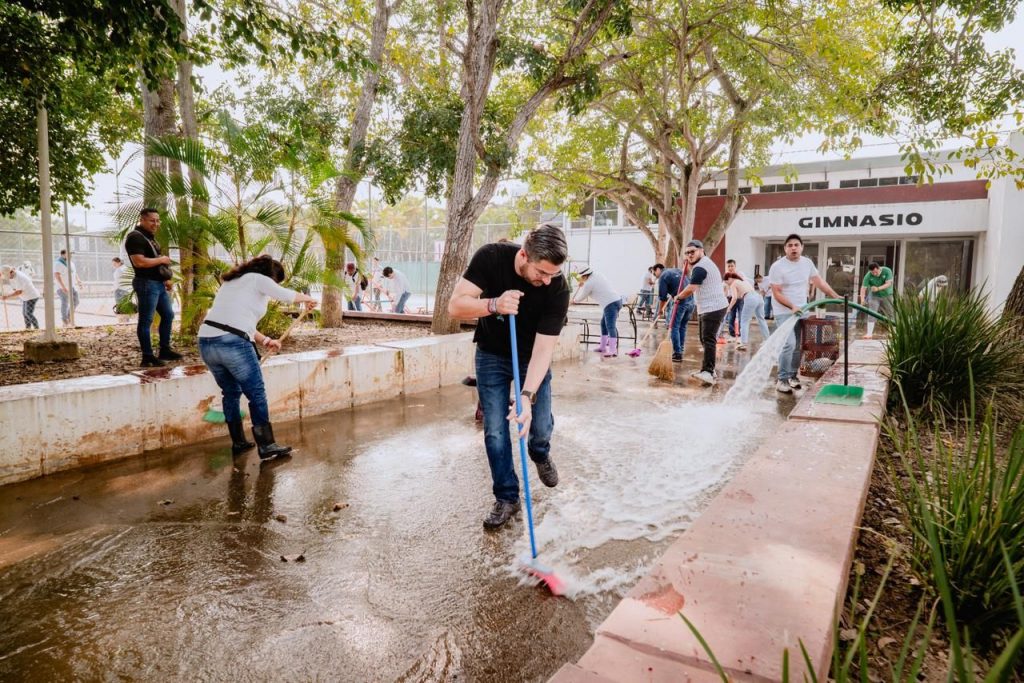 Este sábado se llevó a cabo una jornada masiva de limpieza y recuperación de áreas en la Unidad Deportiva “Enrique Valdez Constantino”, como parte de las acciones para rescatar y dignificar los espacios públicos del municipio.