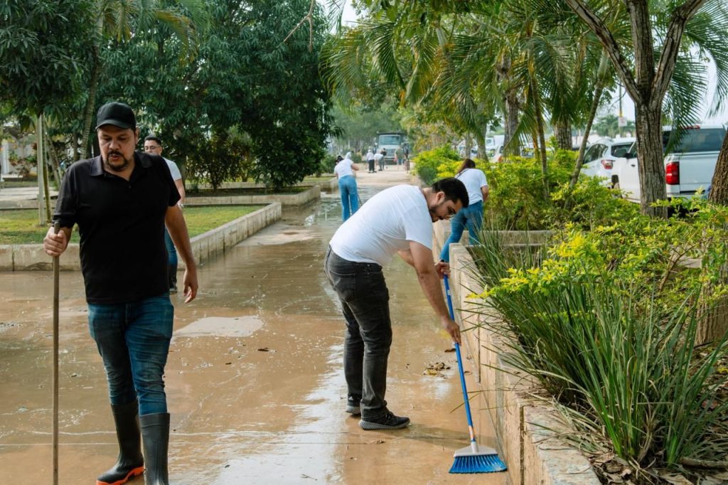 Durante la jornada se realizaron labores de limpieza general, retiro de residuos y rehabilitación de áreas comunes. Para fortalecer los trabajos, se contó con el apoyo de maquinaria especializada, incluyendo tres pipas de agua y una unidad de desazolve combinado, lo que permitió mejorar de manera significativa las condiciones del lugar.