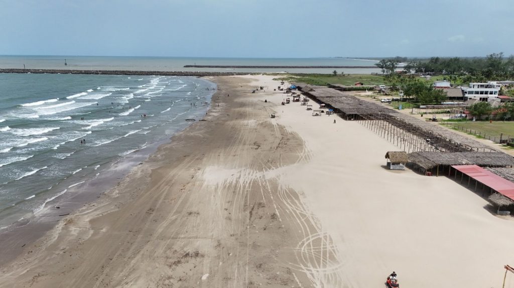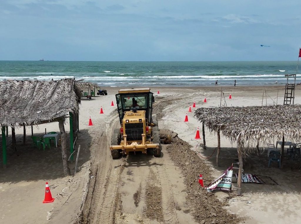 Tuxpan, Ver.- Luego de 2 días de intenso trabajo se han logrado avances importantes en la limpieza de la zona turística de playas. El tramo comprendido de la escollera de Barra Norte a las inmediaciones de Playa Azul, ya está listo.