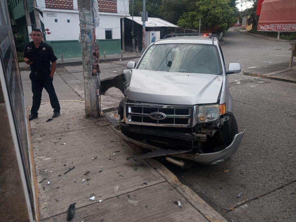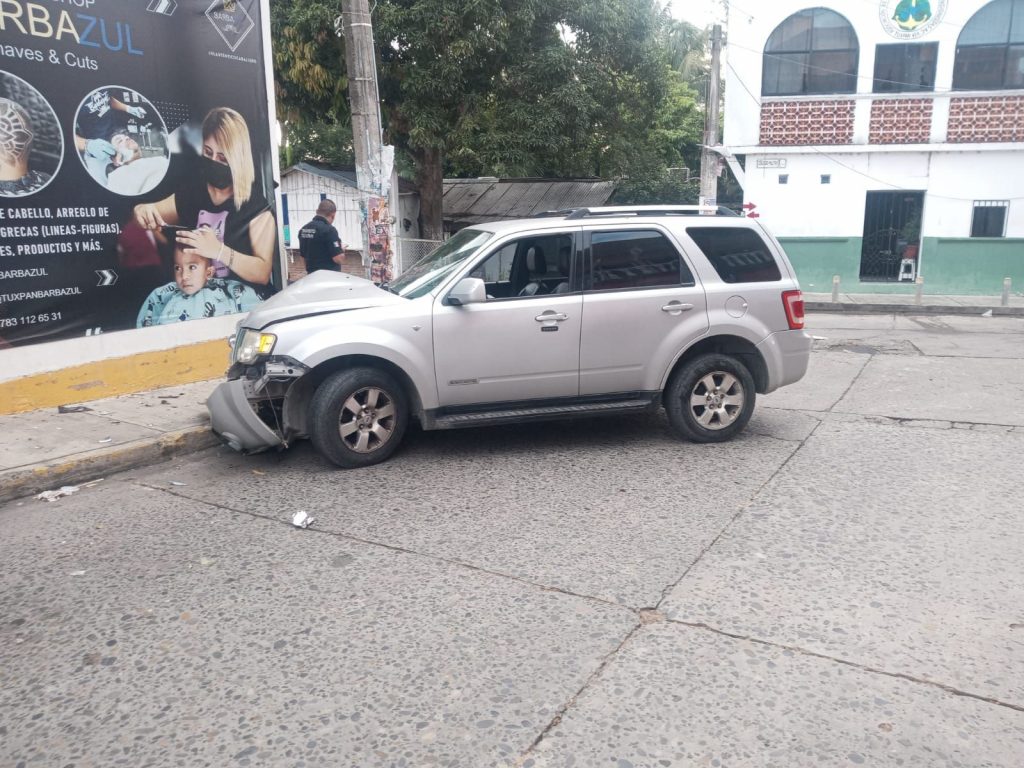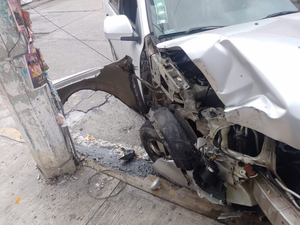 Fuerte golpe y ruido hace despertar a los ciudadanos de la colonia Rosa Maria siendo aproximadamente las 06:30 hrs sobre el cruce de la calle Colegio Militar y Francisco Sarabia en la Colonia en mención donde llega tránsito municipal de este puerto para tomar conocimiento de los hechos en el lugar se localiza la unidad de la marca Ford tipo escape color gris placas del estado número YMH210B misma qué colisiona con un poste de concreto propiedad de comisión federal de electricidad.