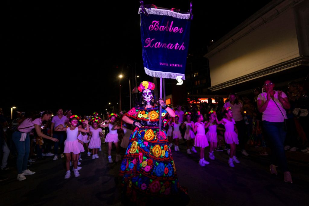 Tuxpan, Ver., 30 de octubre de 2024.- Con un colorido desfile en el que se contó con una enorme participación ciudadana, dio inicio el Festival de Día de Muertos “Tradición de nuestra gente”, que celebra la vida a través de la muerte.