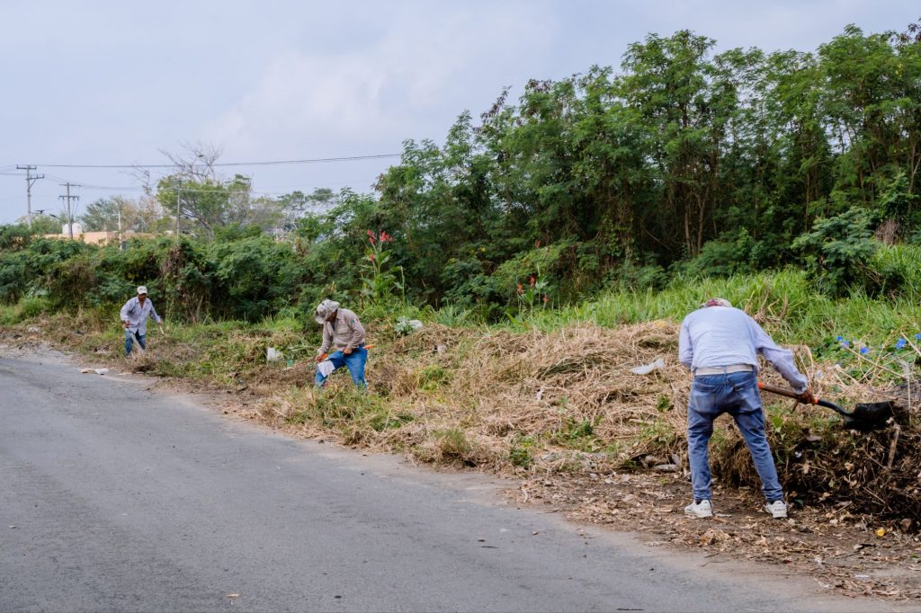 En esta ocasión, las labores se realizaron en el acceso a la zona de playa por la carretera a la termoeléctrica, sobre la barda de PEMEX, donde cuadrillas municipales llevaron a cabo acciones de retiro de basura, deshierbe y mejoramiento de la imagen urbana.