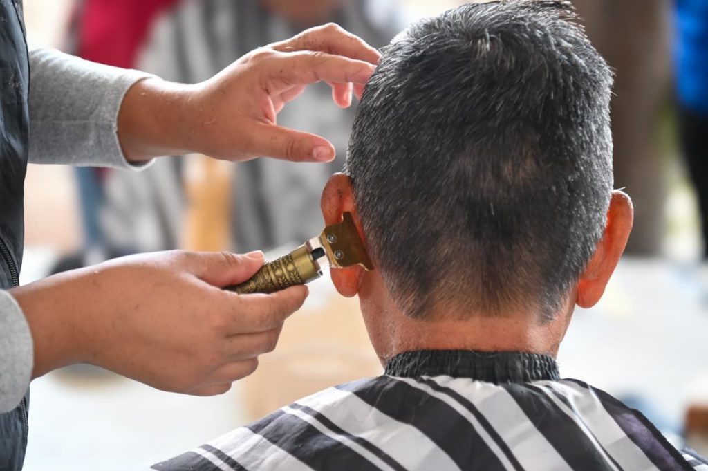 Finalmente, jóvenes del instituto de belleza The Queens realizaron cortes de cabello gratis, por lo que ciudadanos de todas las edades acuden como cada jueves.