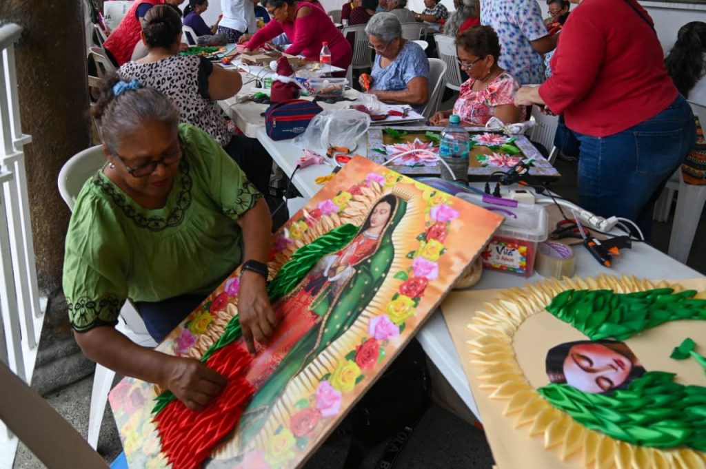 Este jueves en la planta baja de presidencia, decenas de personas acudieron para trabajar en la elaboración de cuadros con motivos navideños. La fundación Sin Miedo a Trabajar Contigo es la encargada de impartir este taller en donde decenas de mujeres asistieron para realizar manualidades con listones.