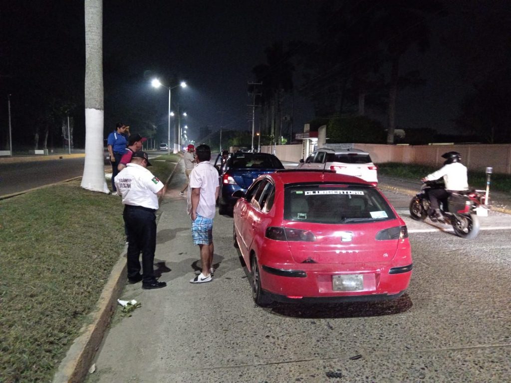 Sujeto que circulaba a exceso de velocidad terminó impactado en la parte trasera de un automóvil dejando únicamente daños materiales, personal de Tránsito Municipal tomó conocimiento y aseguró las unidades.
