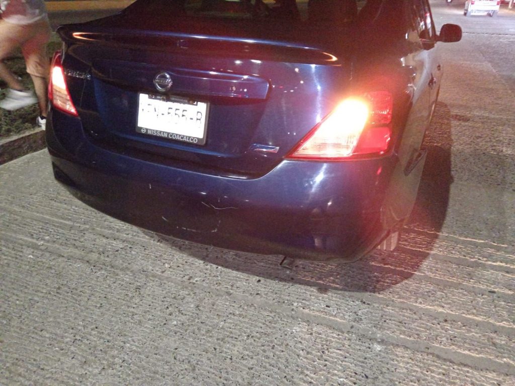 Al no tomar su distancia se impactó por ALCANCE, contra una unidad MARCA NISSAN TIPO VERSA COLOR AZUL MODELO 2012 PLACAS YEN555B del Estado de Veracruz y CONDUCIDO POR JACOBO C. F. DE 53 AÑOS DE EDAD con domicilio en LA MATA DE Tampamachoco.
