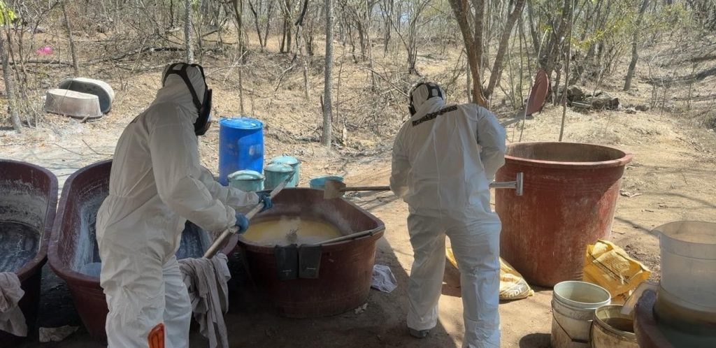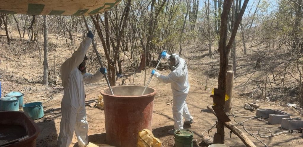 La Secretaría de Marina a través de la Armada de México, por conducto de la Octava Zona Naval, informa que en días pasados, elementos navales en coordinación con personal de la Fiscalía General de la República (FGR) localizaron y neutralizaron un Laboratorio Clandestino dedicado a la producción de metanfetamina, en inmediaciones del poblado Las Juntas, municipio de Mocorito, Sinaloa. Esta acción se llevó a cabo durante patrullajes de vigilancia aérea y terrestre, durante los cuales se localizó y aseguró un Laboratorio Clandestino, en donde fueron destruidos aproximadamente 600 kilogramos de producto terminado de presunta metanfetamina y diversos precursores químicos, entre ellos: 200 litros de alcohol bencílico, 500 kilogramos de tolueno y 75 kilogramos de sosa caustica. El laboratorio contaba con extensas áreas de operación, materiales y accesorios para la producción de droga sintética, entre ellos: cuatro tinas de plástico color café con capacidad de 500 litros, tres tinas de plástico color café con capacidad de mil litros, una bomba sumergible, nueve quemadores, 10 cilindros de gas de capacidad de 30 kilogramos y 17 ollas de peltre, mismos que fueron inhabilitados en su totalidad para evitar su reutilización.