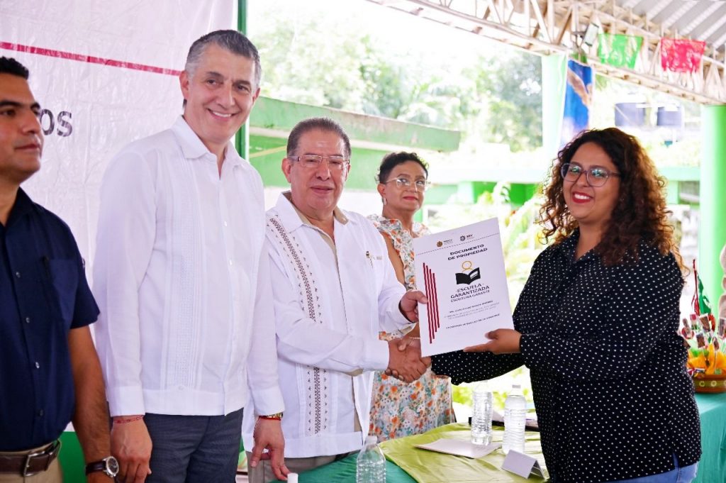 “Los documentos de propiedad que hoy se entregan forman parte de las acciones tangibles, y el legado con el que el gobierno que encabeza el Ing. Cuitláhuac García Jiménez cumple con los estudiantes y maestros de nuestro estado, al otorgar certeza y seguridad jurídica a los inmuebles en los que reciben e imparten sus clases”, mencionó.