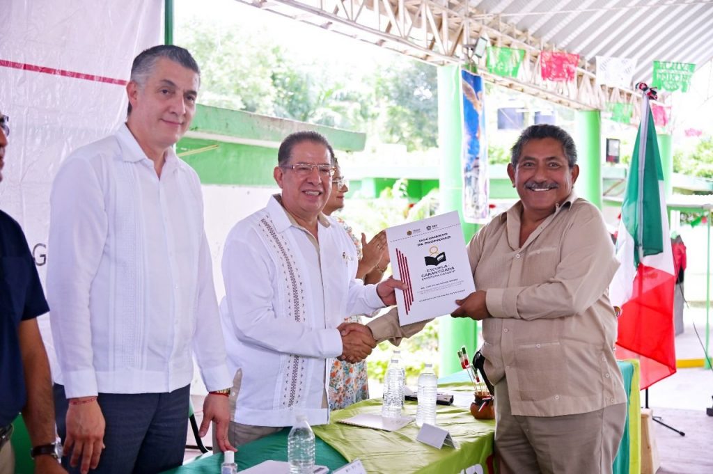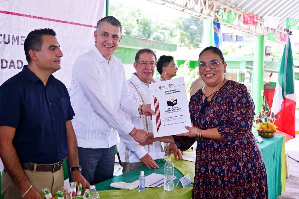 Al dar la bienvenida a las autoridades estatales y regionales, el alcalde José Manuel Pozos Castro señaló que es importante asegurar la titularidad patrimonial de las escuelas, lo que también brindará certeza jurídica a maestros y a comunidades educativas.