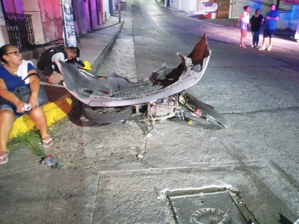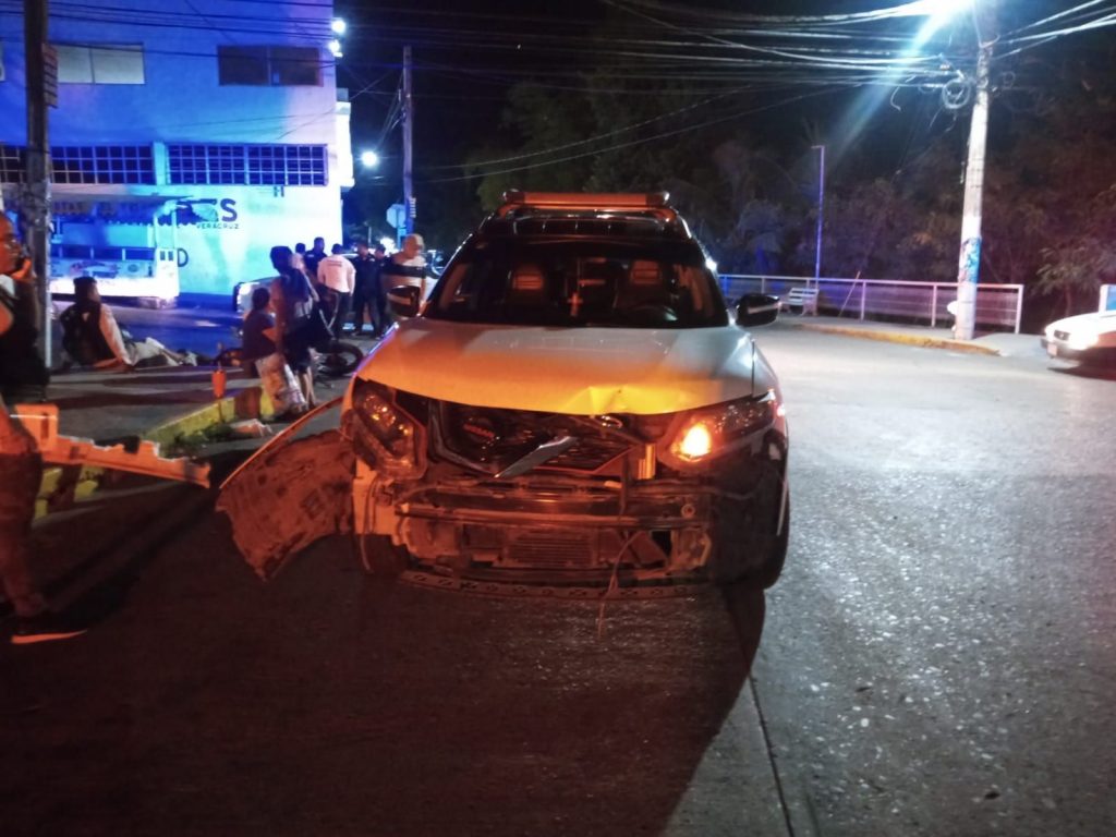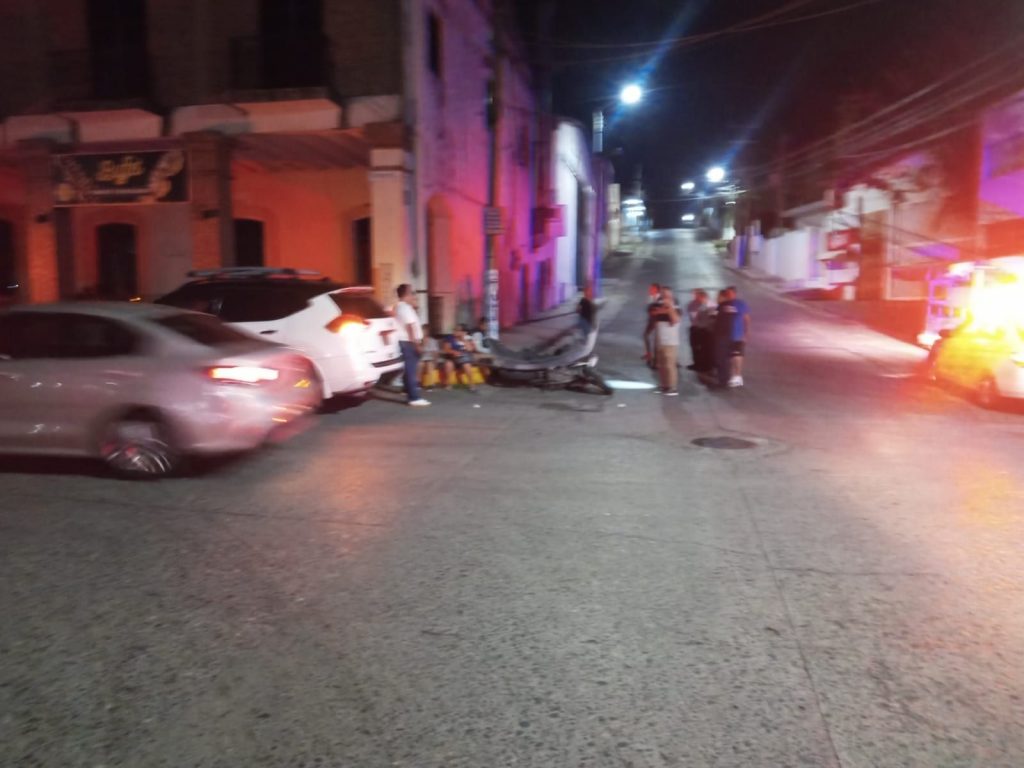 Con un motociclista lesionado es el resultado de un accidente el cual fue ocasionado alrededor de las 23:30 horas sobre el cruce de las calles Colegio Militar y 5 de mayo en la Colonia Zapote Gordo en Tuxpan Veracruz cabe mencionar que en este lugar el ciudadano Arturo «N» con domicilio en Calle Francisco Sarabia de la colonia Rosa María iba conduciendo un vehículo Nissan tipo X-trail de color blanco modelo 2016 placas del estado # YMG914B este al invadir circulación preferente alcanza a colisionar a una motocicleta Dinamo tipo 200 cc color blanco con rojo modelo 2024 placas del estado # 60YSU9 la cual era conducida por el ciudadano Julio César «N» de 34 años de edad con domicilio conocido en la parada la piedra de la colonia Alto Lucero.