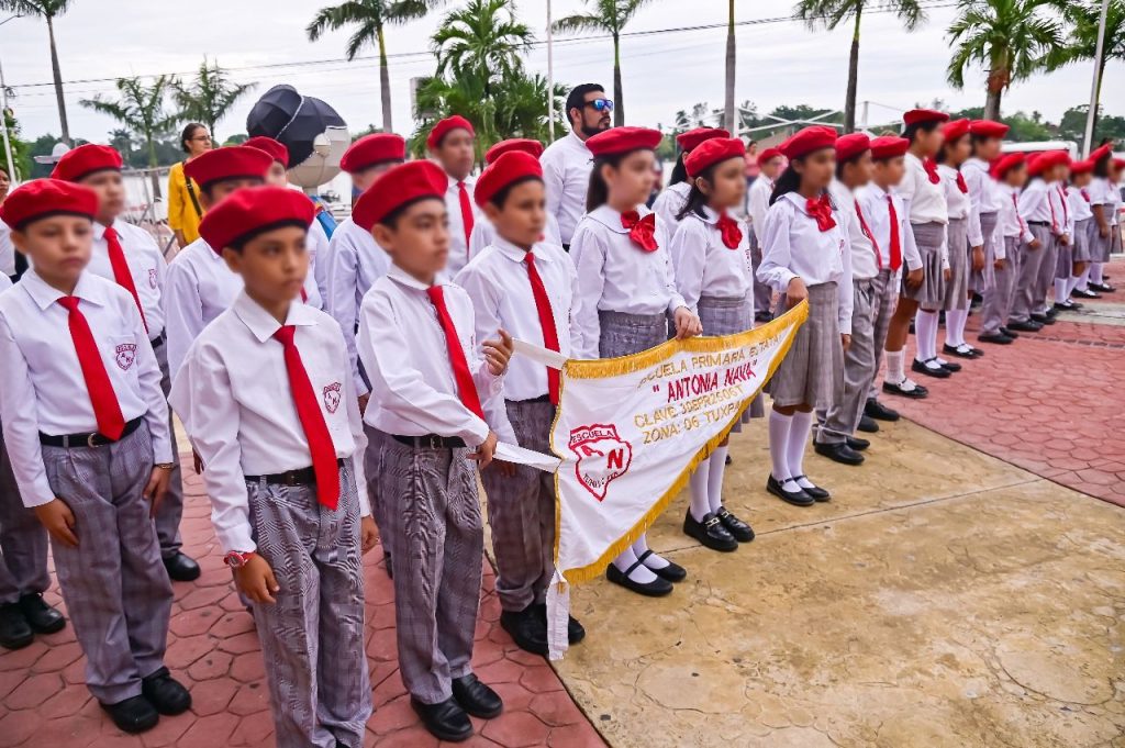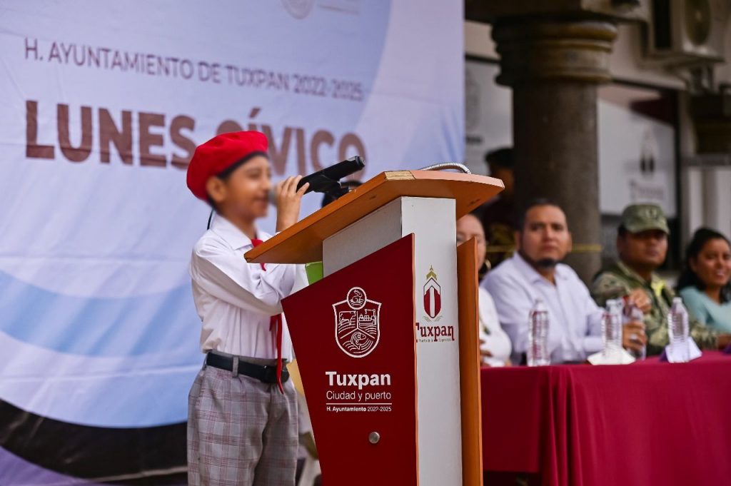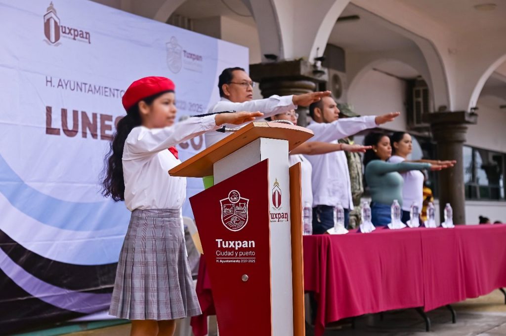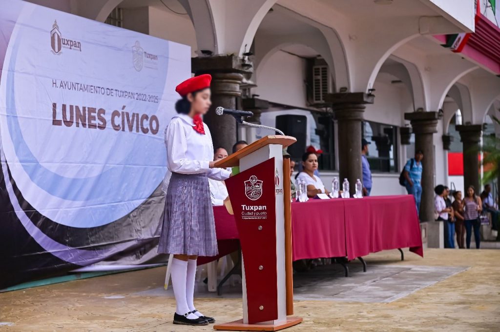 En el marco de la conmemoración de la Gesta Heroica de los Niños Héroes de Chapultepec, que se celebra el próximo 13 de septiembre, el gobierno de Tuxpan realizó el Lunes Cívico en la explanada municipal, con la participación de alumnas y alumnos de la Escuela Primaria Antonia Nava.