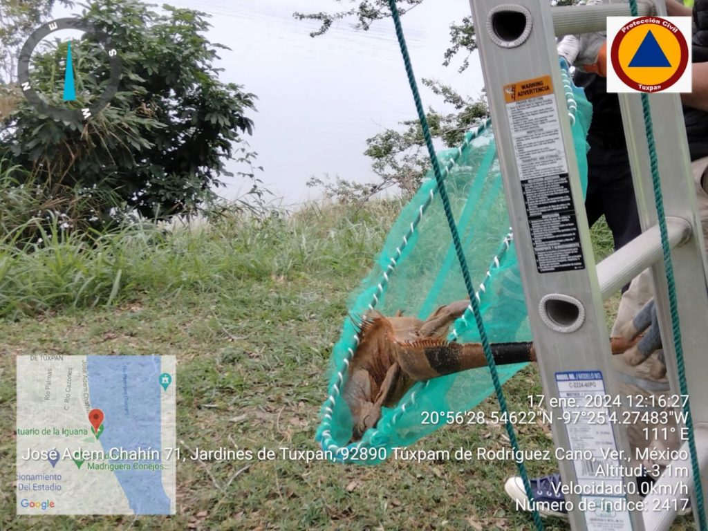 Tuxpan, Ver., 17 enero 2024.- Siguiendo las instrucciones del alcalde José Manuel Pozos Castro, elementos de Protección Civil y Bomberos llevaron a cabo un operativo para salvaguardar a las iguanas del Santuario que entraron en letargo debido a las bajas temperaturas.