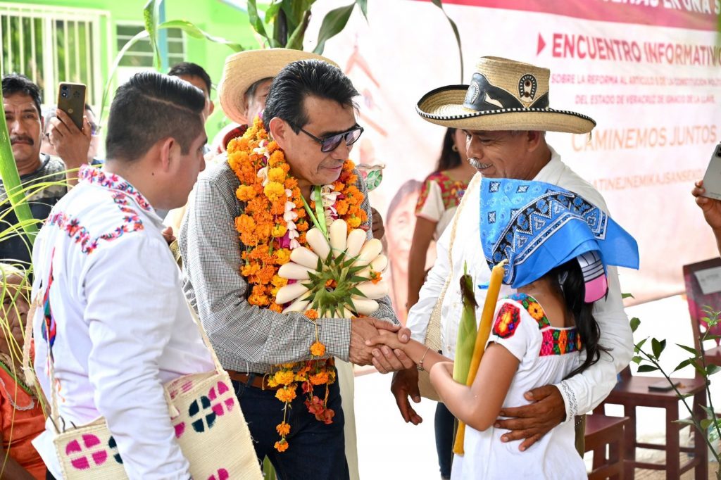 El presidente de la Junta de Coordinación Política (Jucopo), diputado Esteban Bautista Hernández, encabezó el encuentro informativo Pueblos indígenas en una sola voz, en la cabecera municipal de Chicontepec, donde manifestó que la reforma al Artículo 5° constitucional, impulsada por la gobernadora Rocío Nahle García, da certidumbre jurídica y libertad en la determinación, organización y expresión a los pueblos y comunidades indígenas, por lo que ahora “ya son dueños de su propio destino y son reconocidos desde la Carta Magna”.