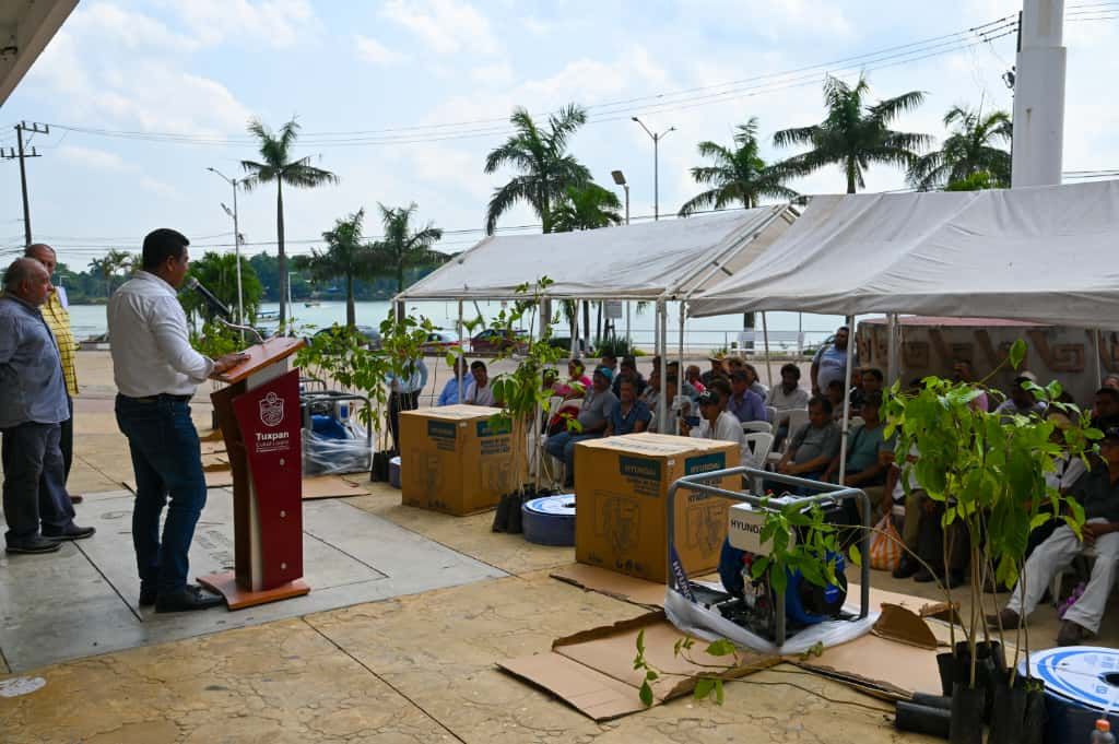 Como parte del “Programa de apoyo para mitigar los efectos de la sequía y el cambio climático”, esta mañana la Secretaría de Desarrollo Agropecuario, Rural y Pesca (SEDARPA), en coordinación con el Ayuntamiento de Tuxpan hicieron entrega de motobombas, fertilizantes y mangueras a habitantes de la zona rural.